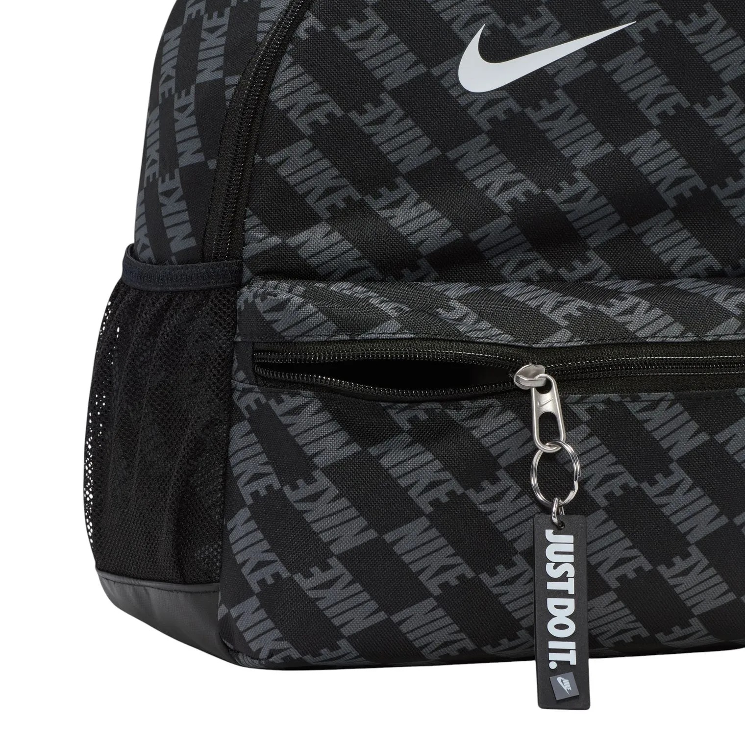 На передней части расположен логотип бренда и декоративный брелок.