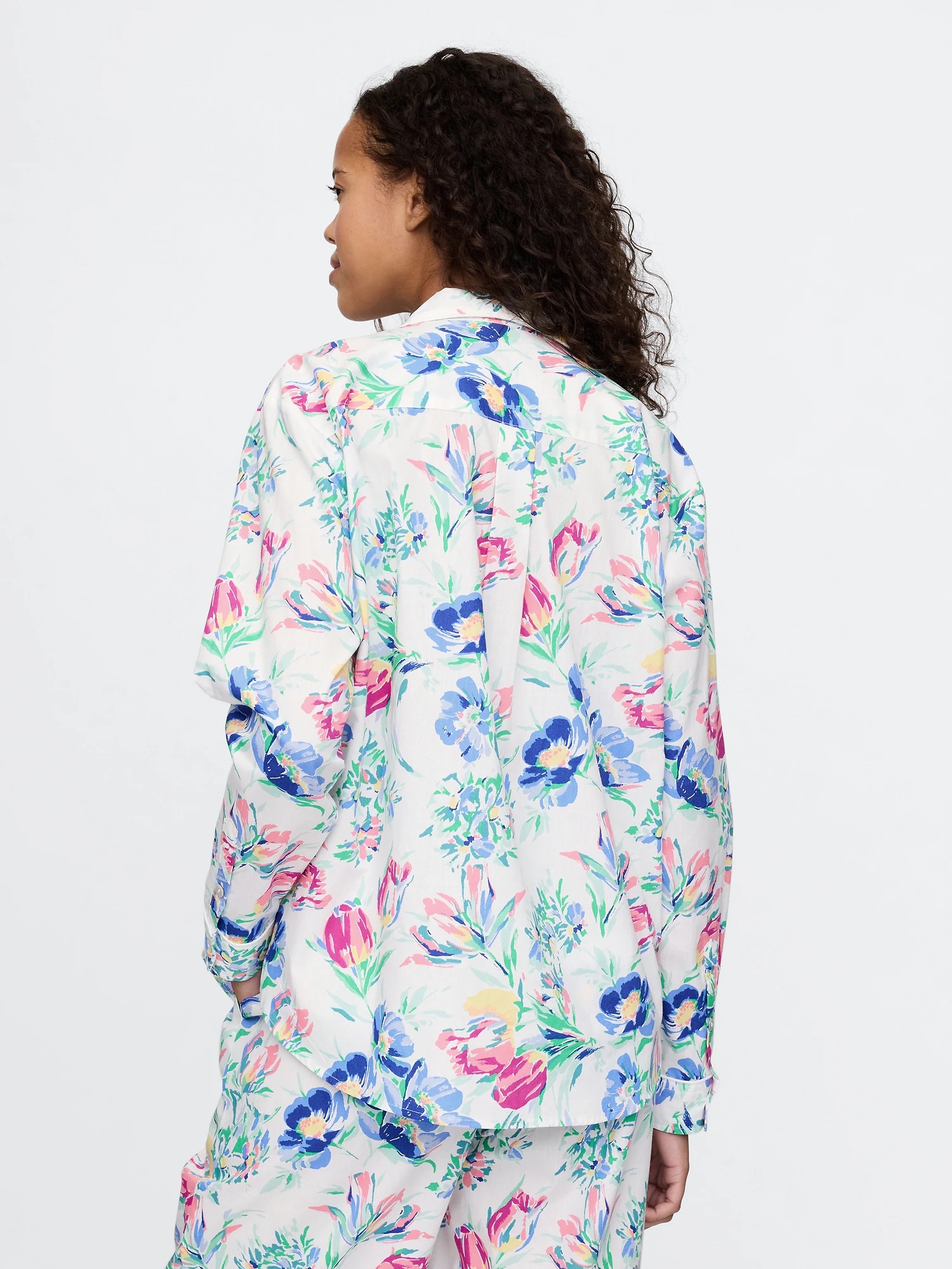 Цветочный принт по всей поверхности рубашки.