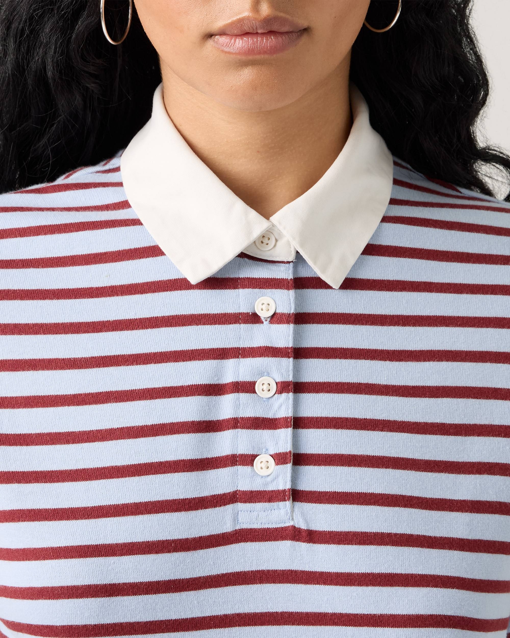 Футболка-поло из мягкой хлопковой ткани с принтом в виде горизонтальных полос.