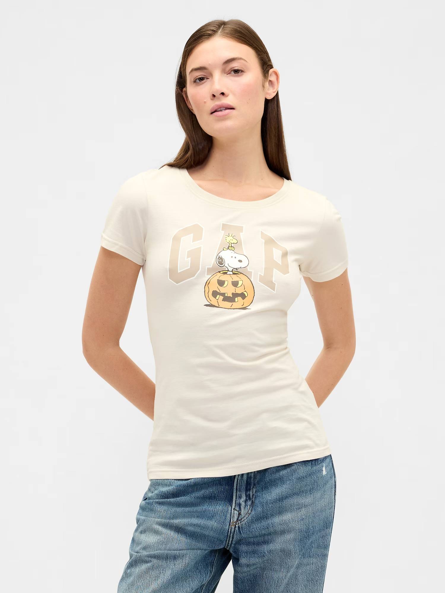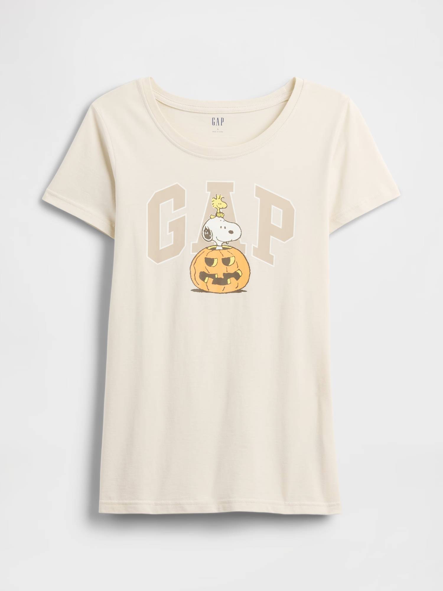 Спереди логотип бренда и принт персонажа Snoopy в стиле Хэллоуин.