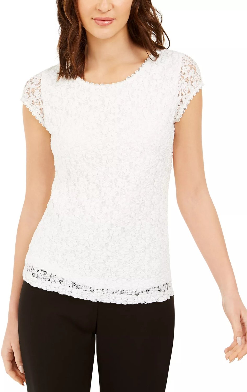 Классический круглый вырез и короткие рукава с фестончатым краем, который придает роскошный вид.