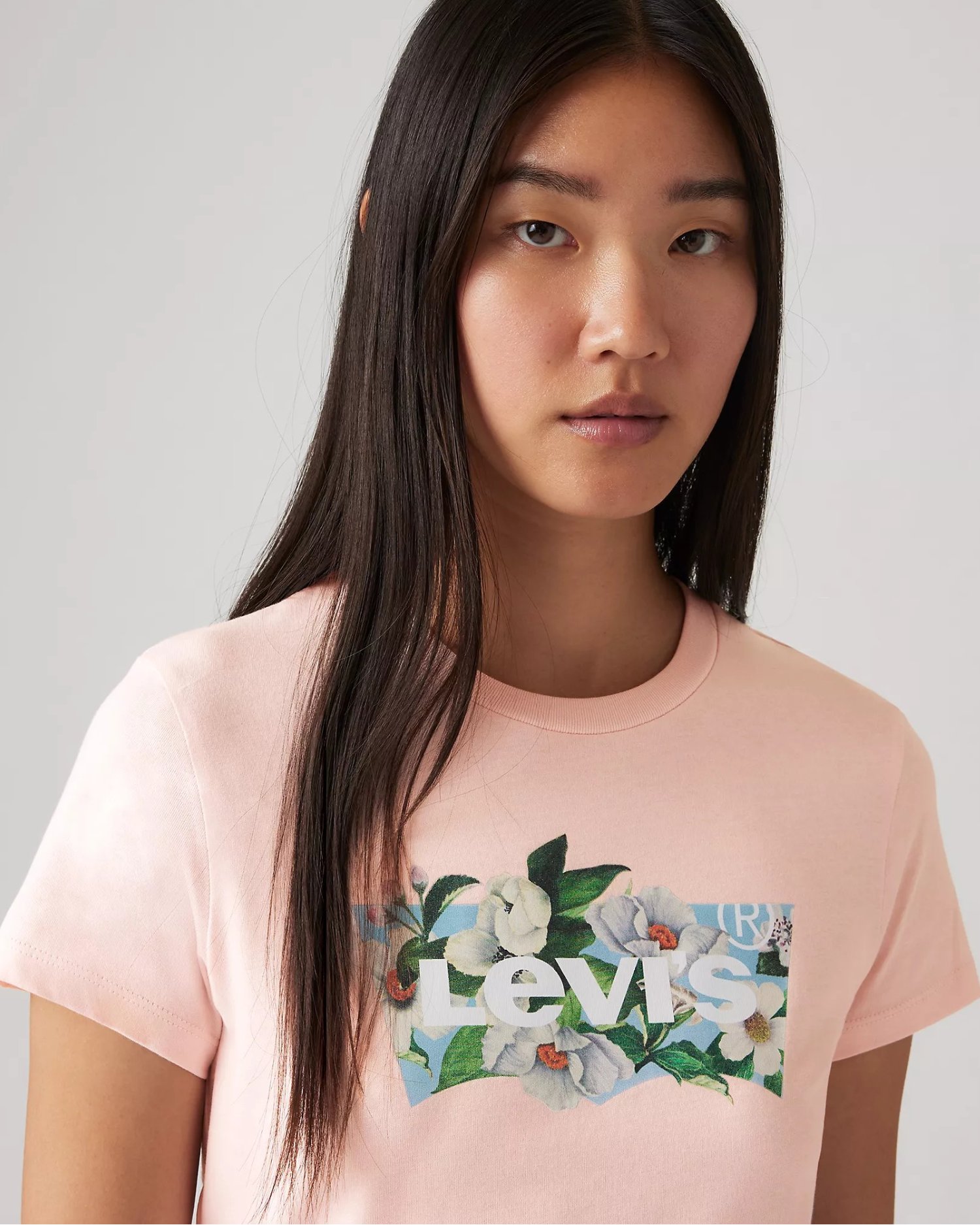Логотип бренда спереди с цветочным принтом.
