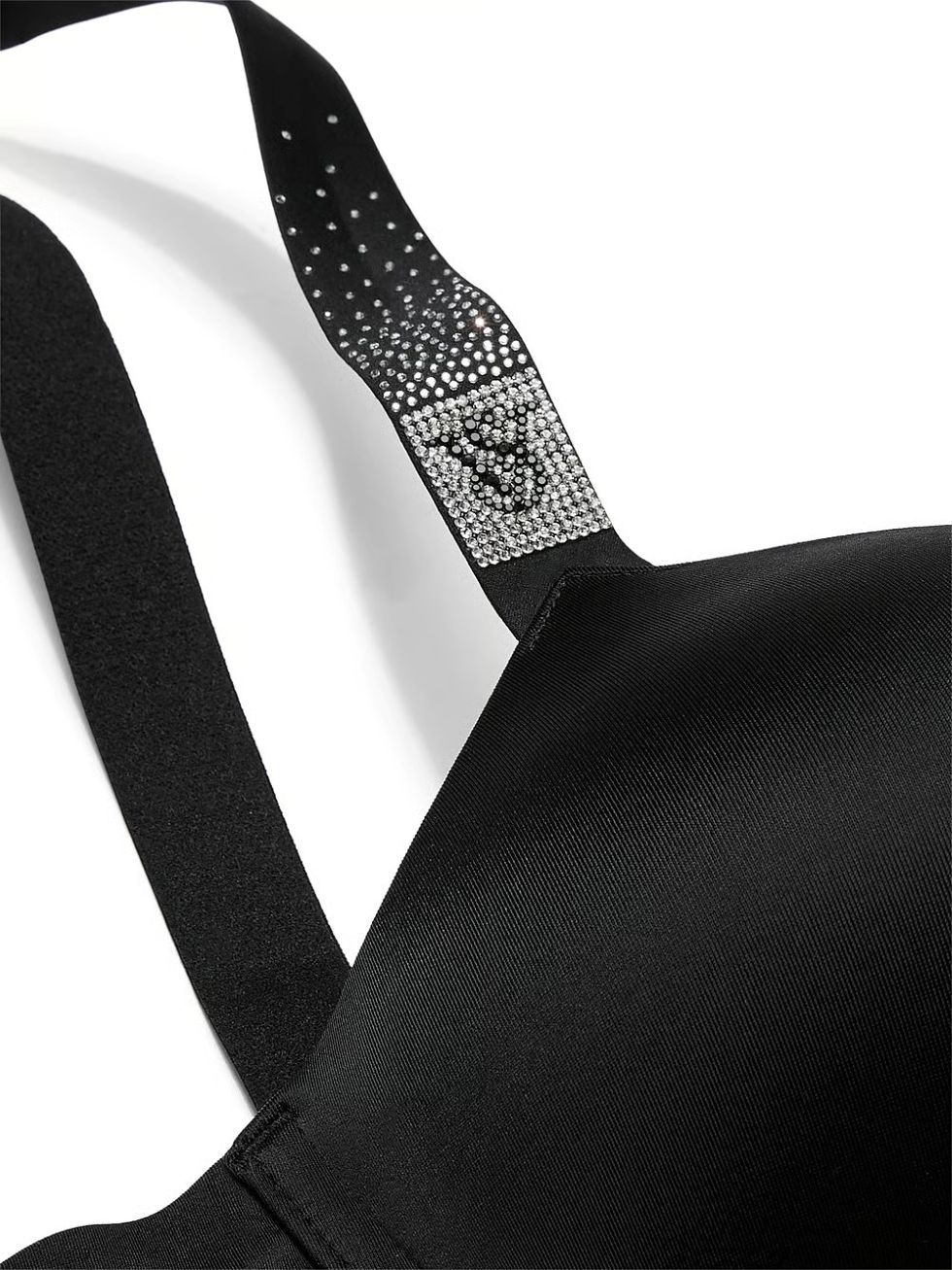 Бретели на бюсте и трусиках украшены россыпью страз.