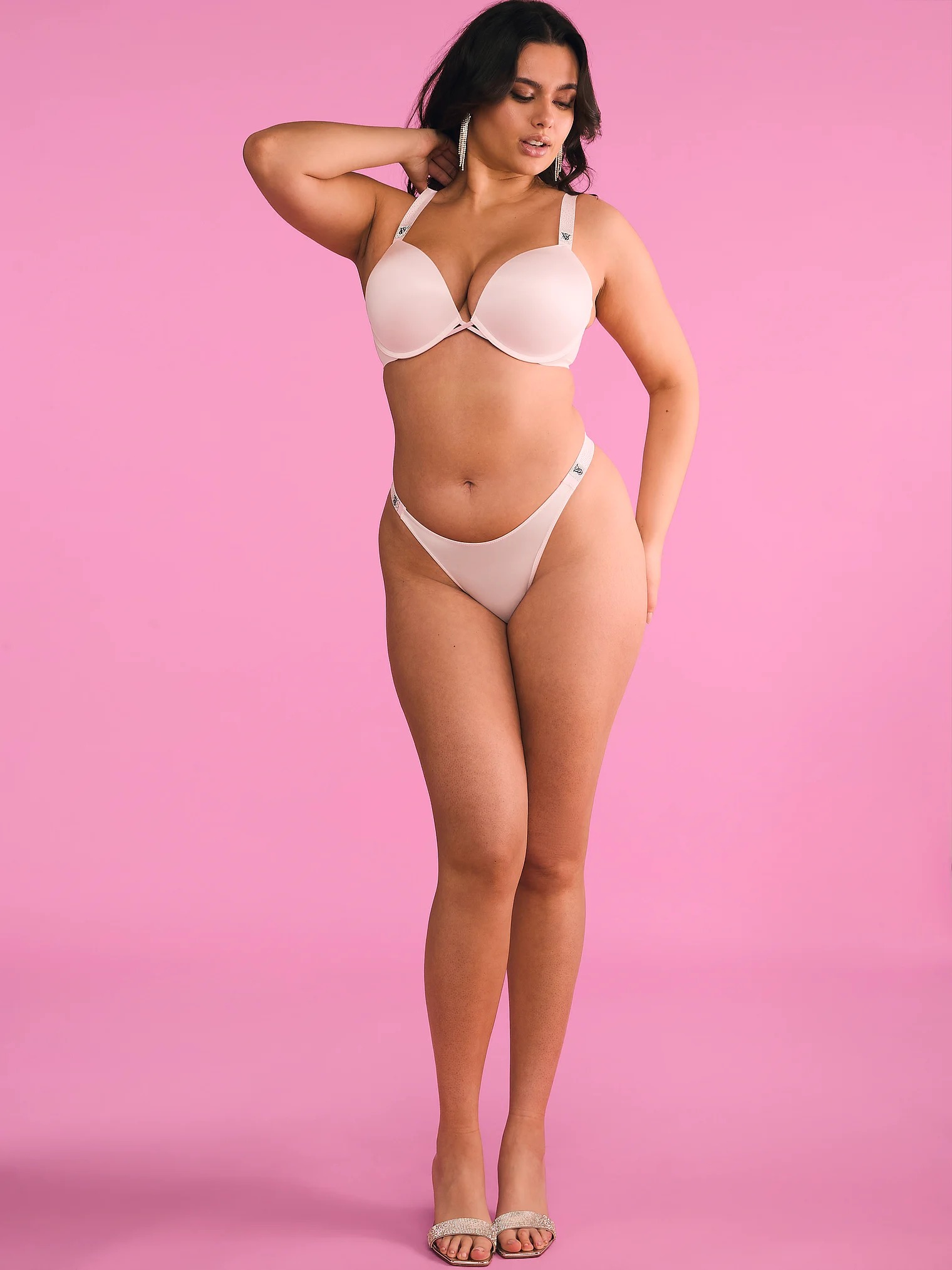 Гладкий комплект белья состоит из бюстгальтера Push-Up и трусиков бразильян.