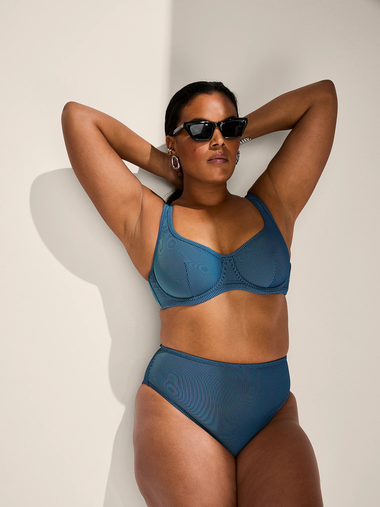 Купальник из текстурированной ткани с принтом в тонкую полоску.