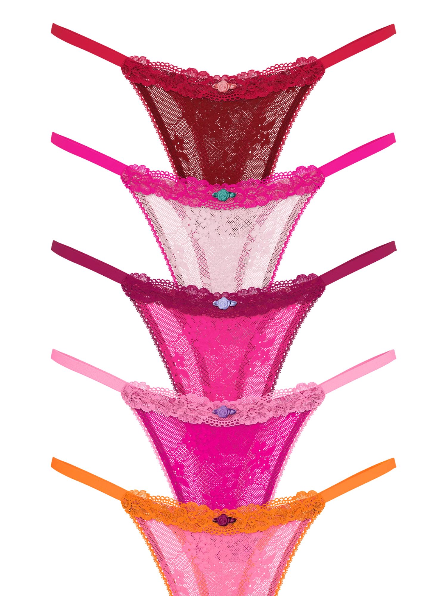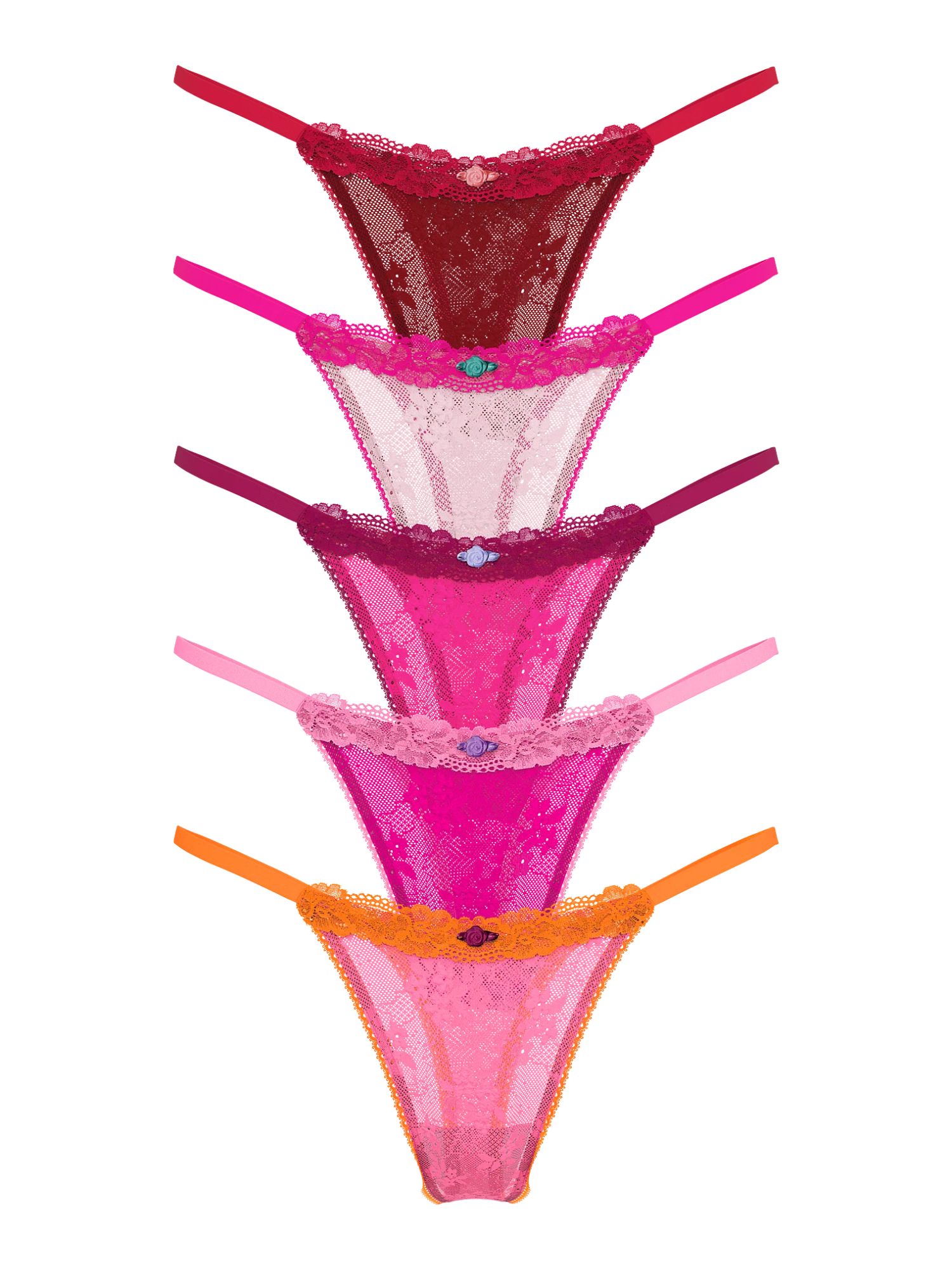 Набор из 5 трусиков тонг разных цветов.
