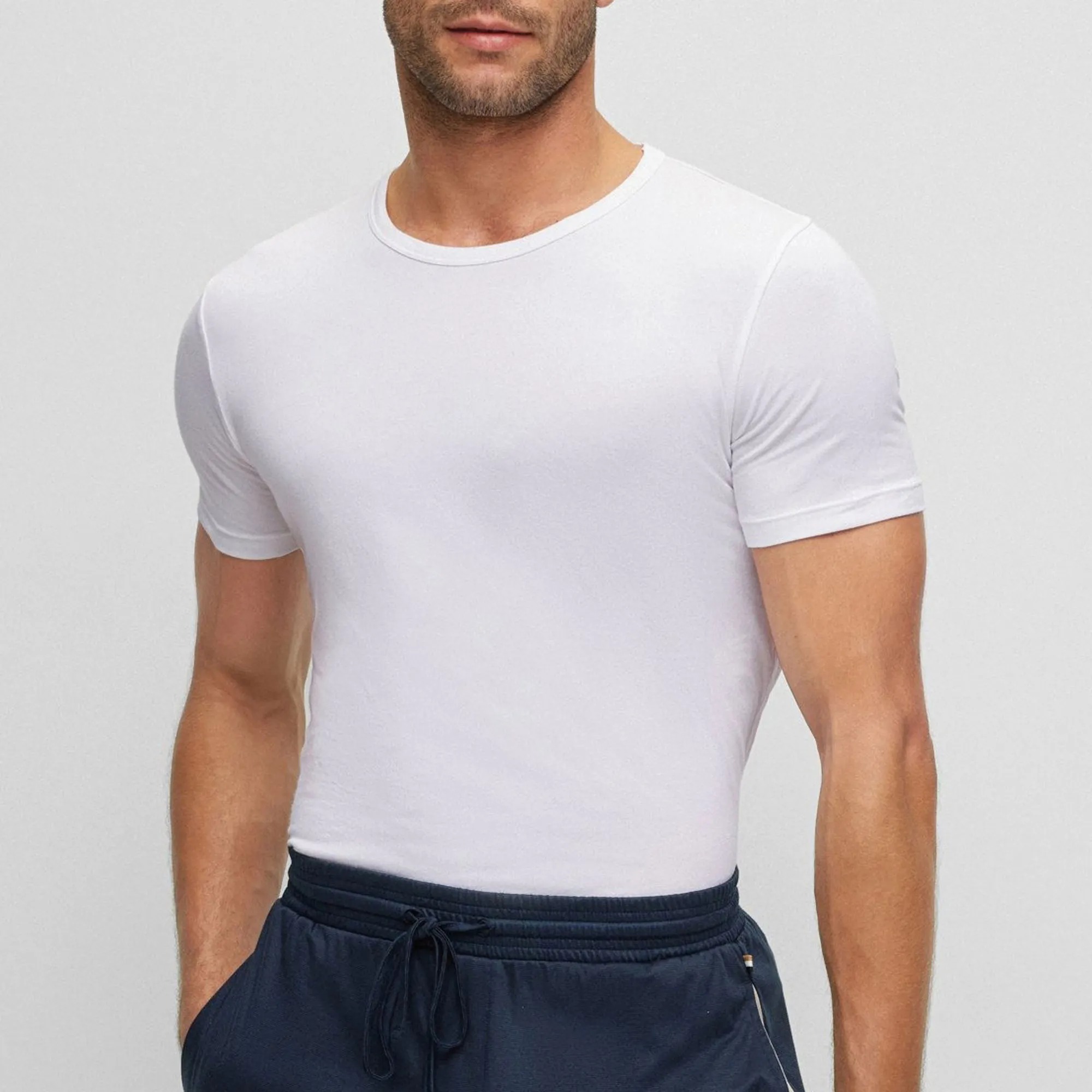 Классическая мужская футболка BOSS выполнена в лаконичном дизайне и станет универсальной основой гардероба. Модель белого цвета с круглым вырезом  и короткими рукавами подходит для повседневной носки.