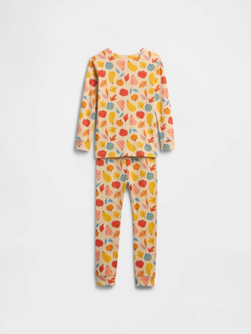 Милый принт в виде листочков и тыкв по всей поверхности пижамы.