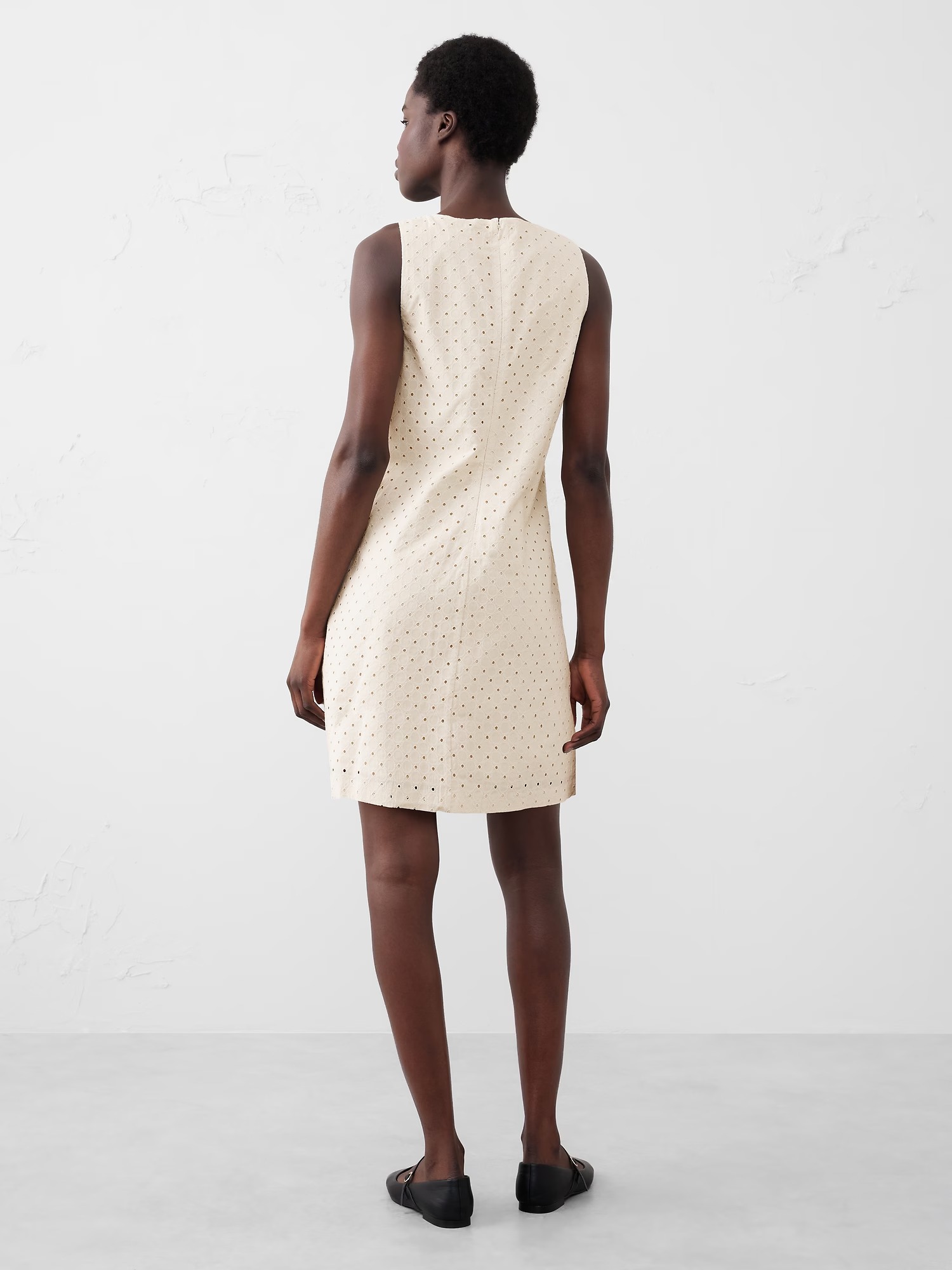 Короткое женское платье от Banana Republic с узором-перфорацией и вышивкой в тон.