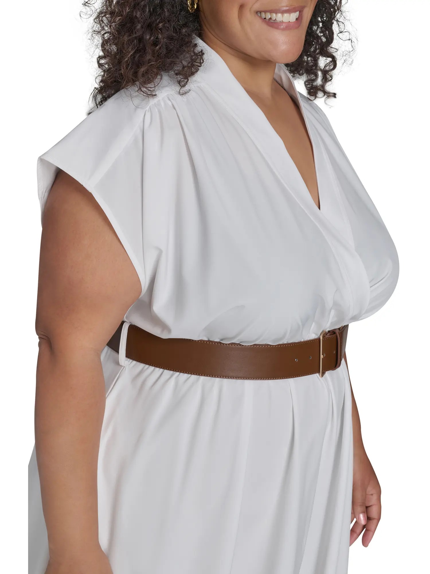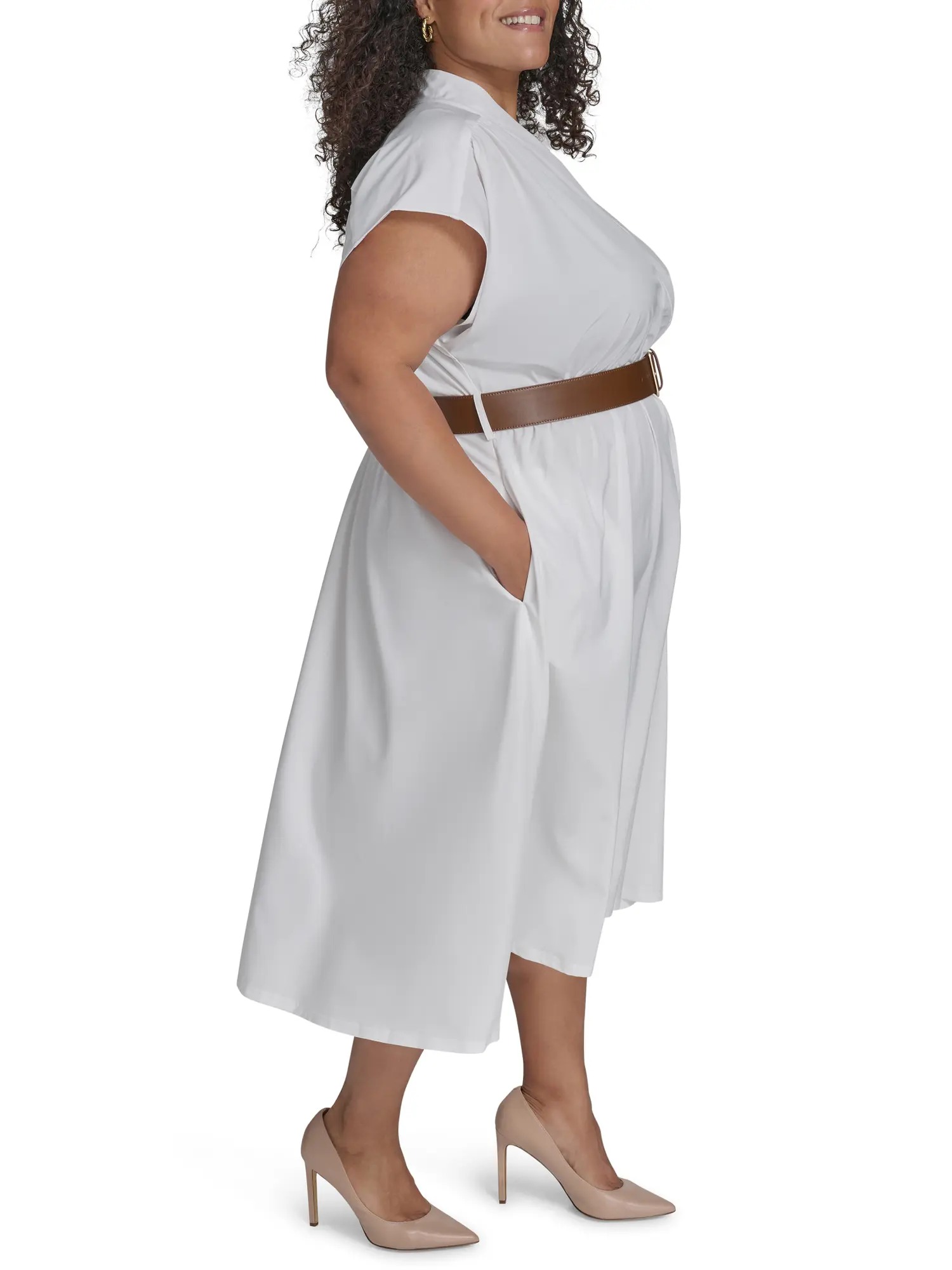 Платье идет с ремнем, что позволяет подчеркнуть талию.