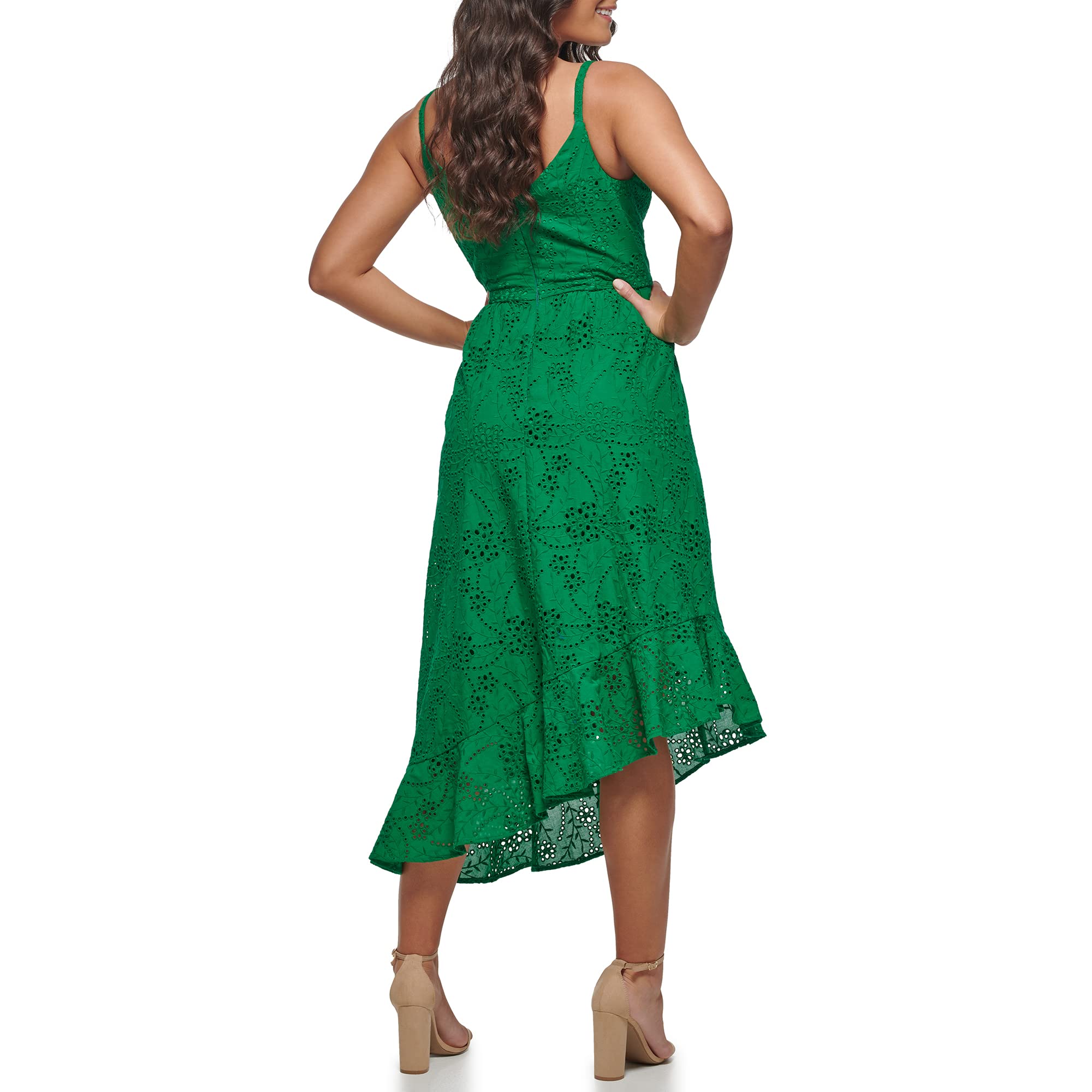 Женское платье миди GUESS с перфорацией.