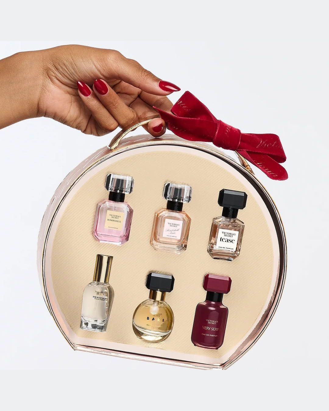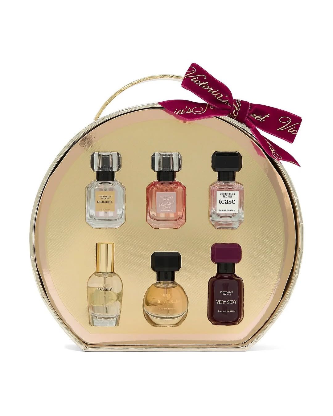 Подарочный набор включает: Mini Eau de Parfums в ароматах Bombshell, Bombshell Soirée, Tease, Bare, Very Sexy и Heavenly.