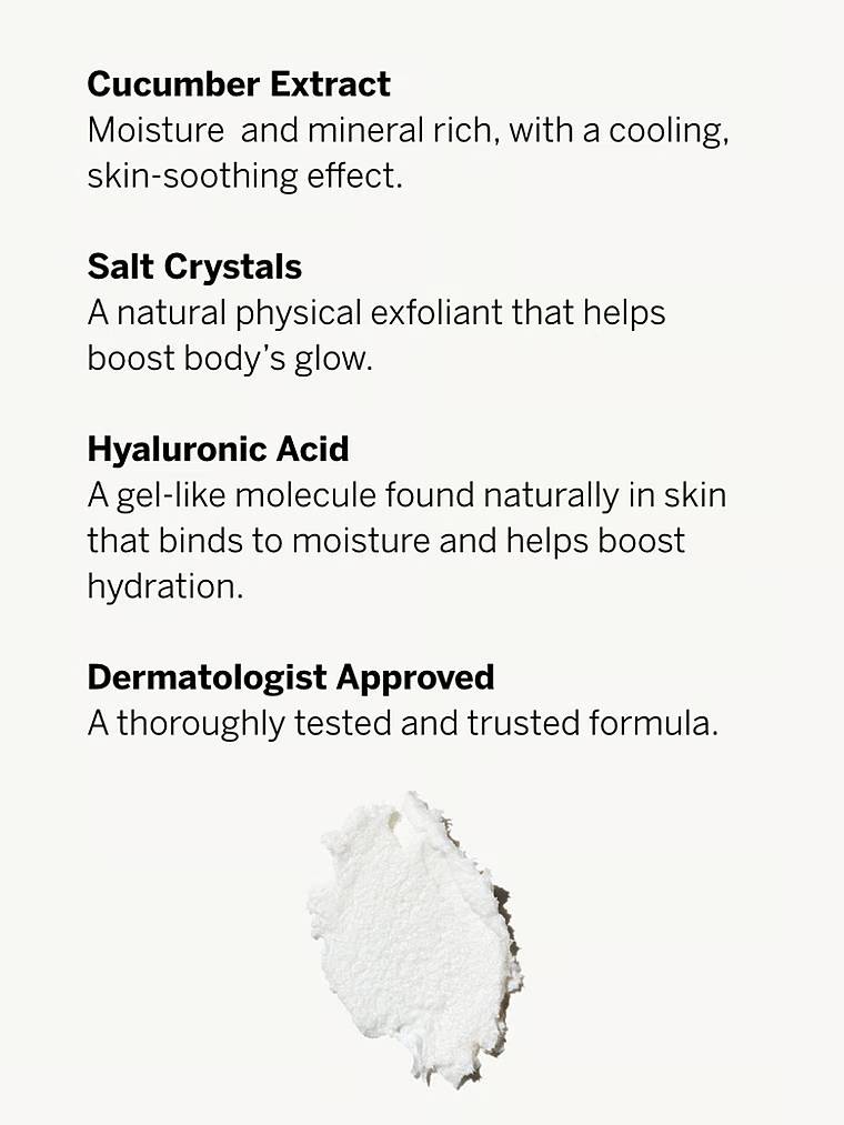 Отшелушивающий скраб с кристаллами соли, огуречной водой и гиалуроновой кислотой. Мягко очищает кожу, делая ее гладкой, сияющей и обновленной.