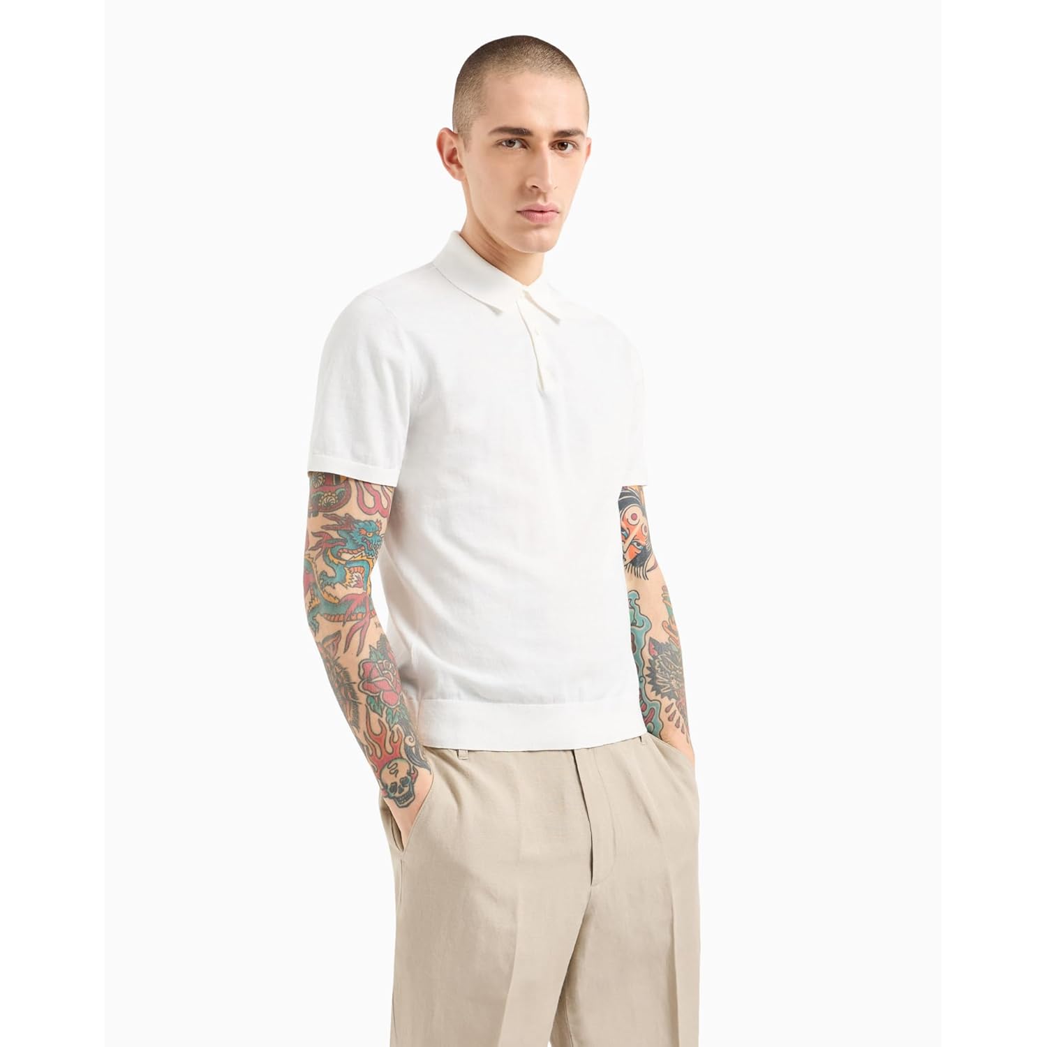 Футболка-поло вязаная Armani Exchange 1159859137 (Белый XL)