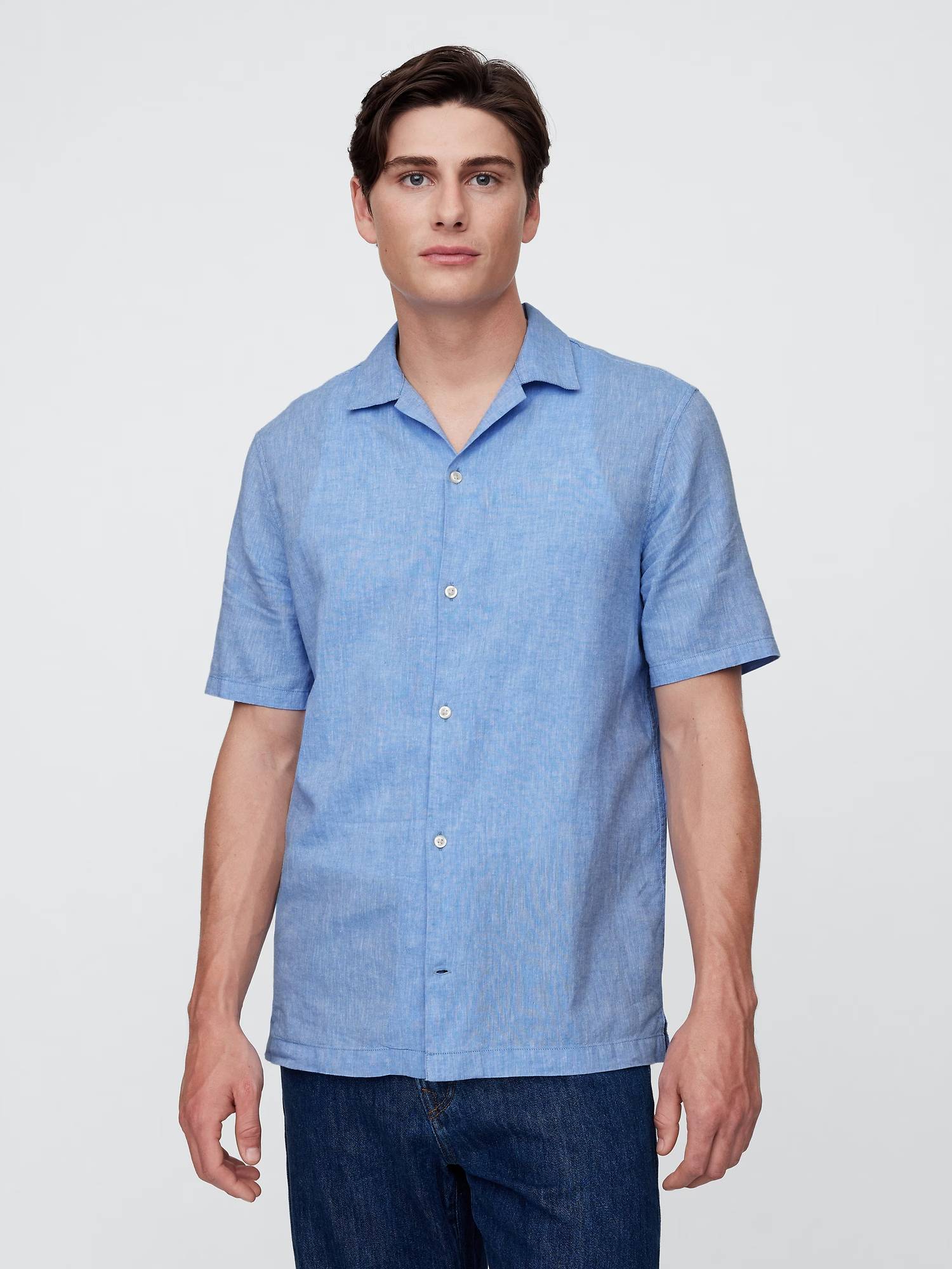 Стильная и удобная рубашка из легкого материала - смеси льна и хлопка.