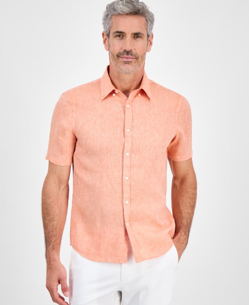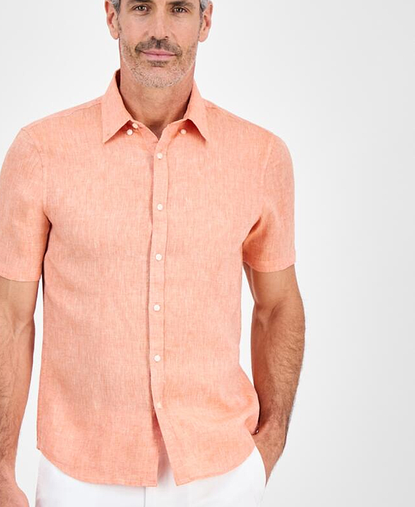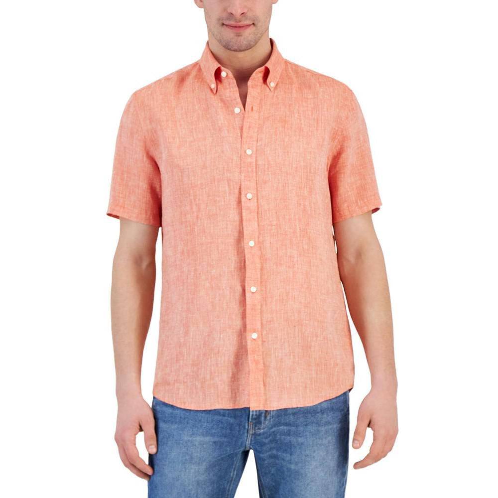 Мужская льняная рубашка с коротким рукавом Michael Kors 1159854966 (Оранжевый S)