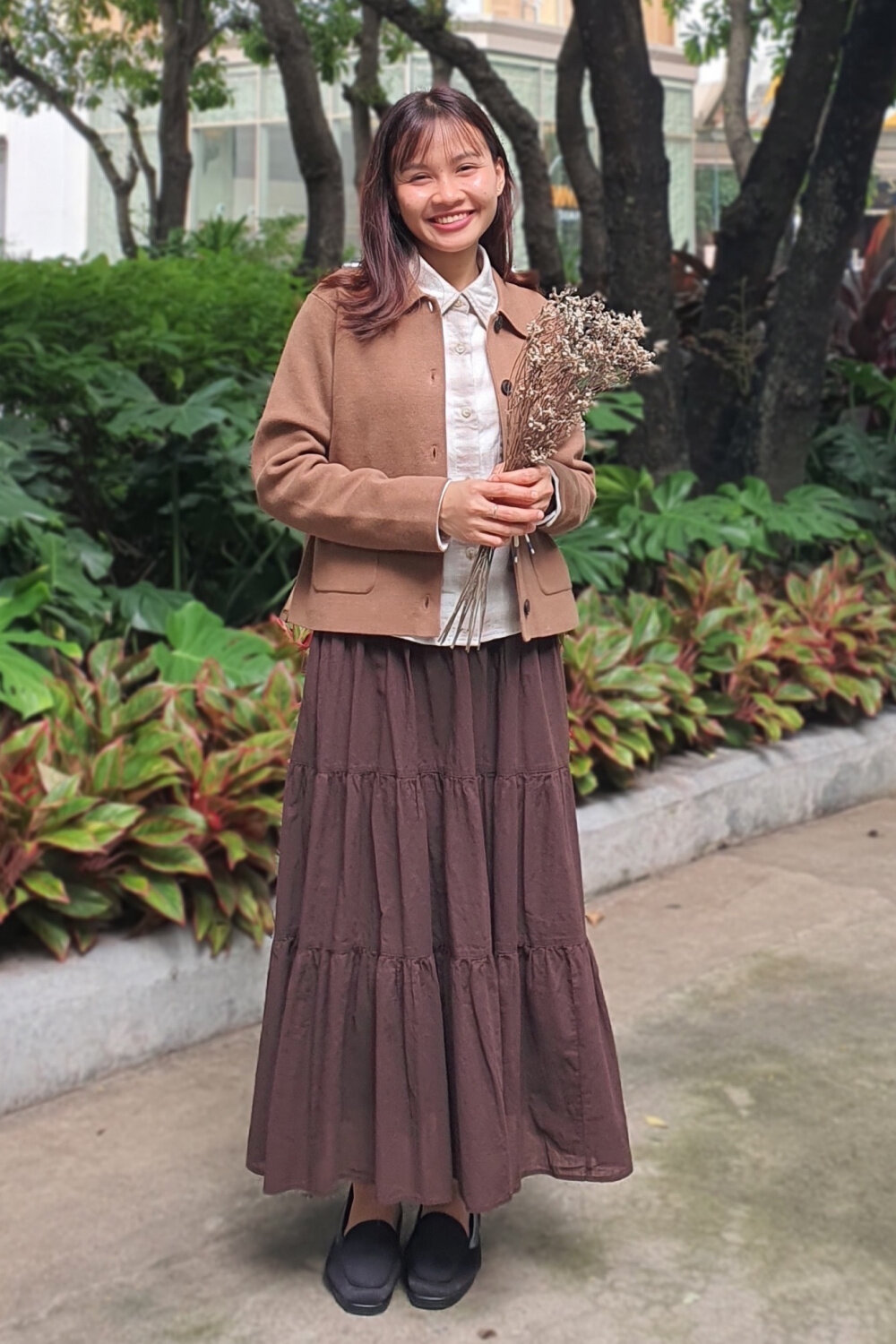 Короткий, свободный силуэт хорошо подходит в качестве верхнего слоя и идеально сочетается с объемными брюками или юбками.