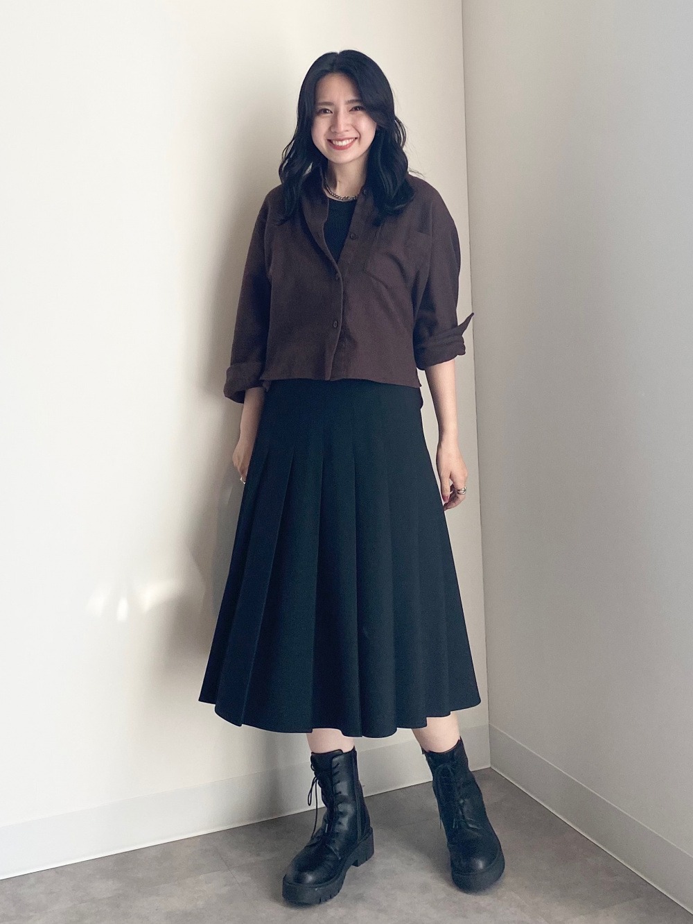 Укороченный, свободный силуэт хорошо подходит в качестве верхнего слоя и идеально сочетается с объемными брюками или юбками.