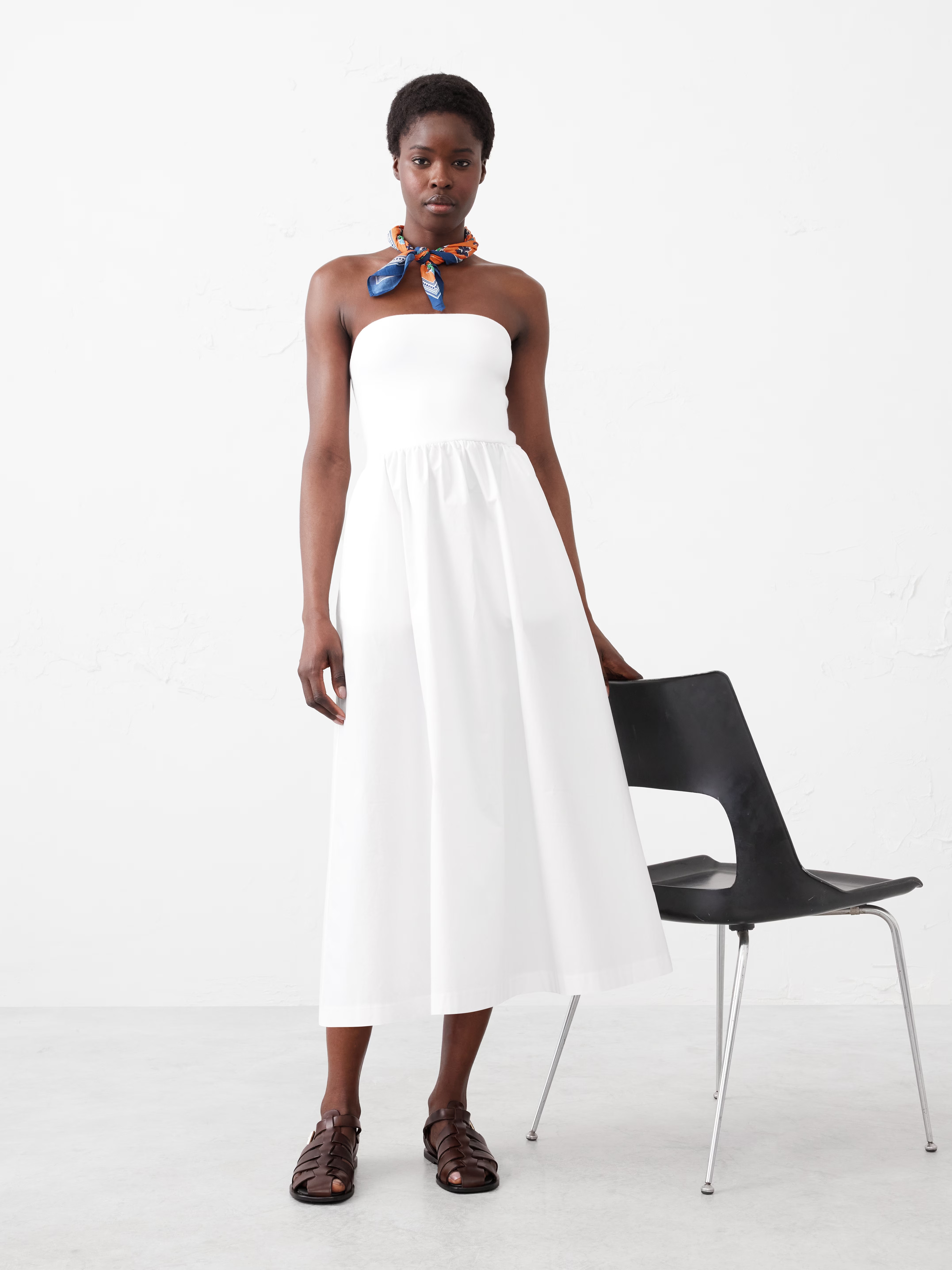 Длина сарафана — миди.
