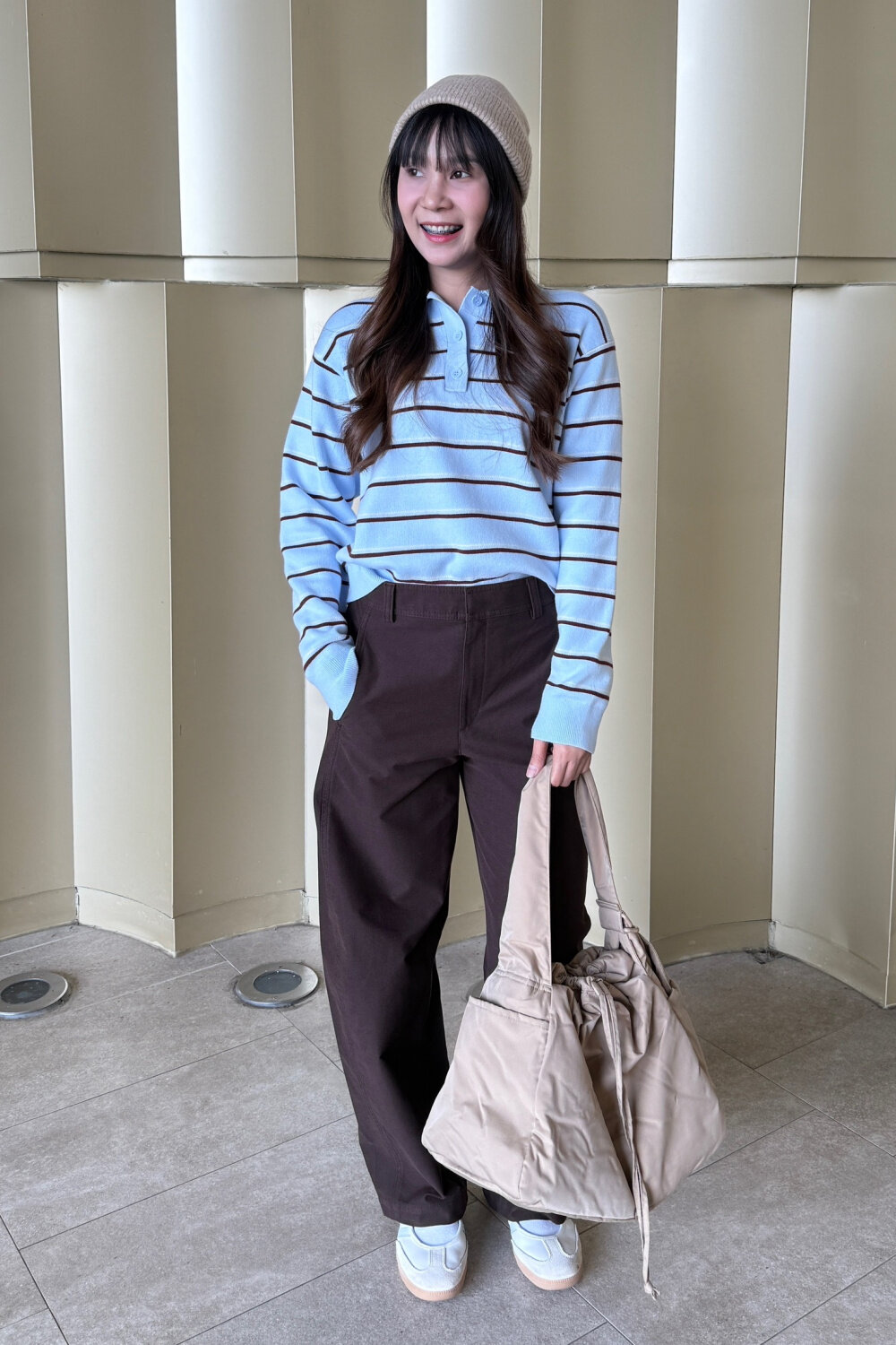 Вязаная шапка из пряжи Soufflé UNIQLO.