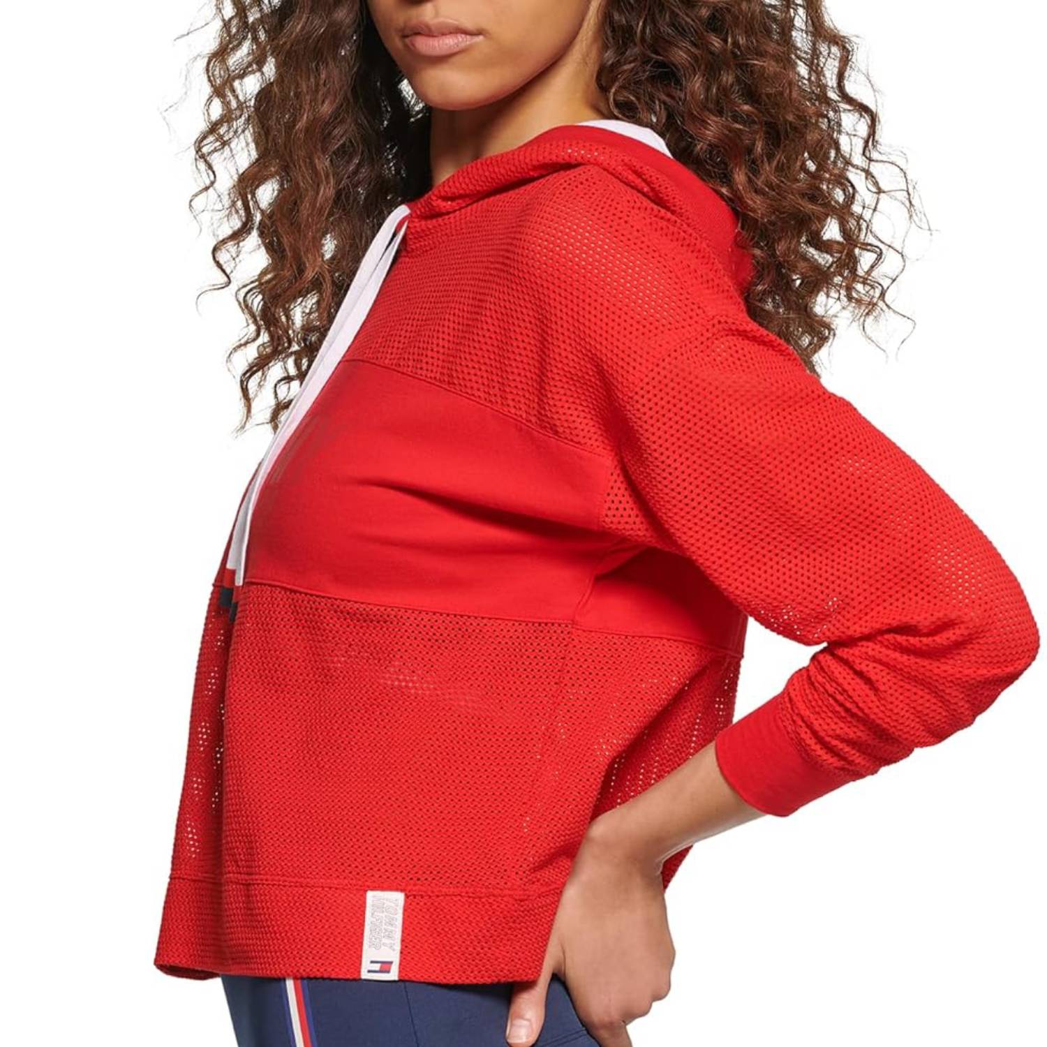 Сетчатое худи с текстильной вставкой по центру.