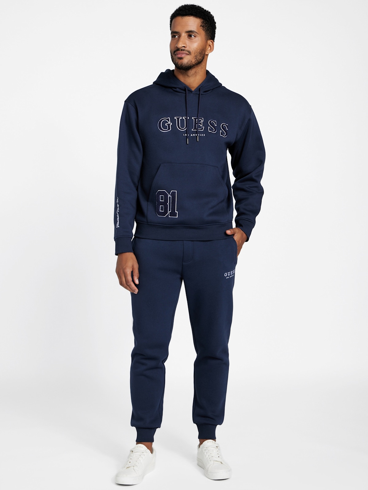 Мужской спортивный костюм от GUESS отлично подходит как для занятий спортом, так и для повседневной носки.
