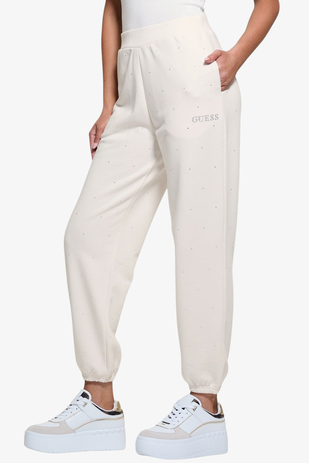 • Женские джоггеры Guess спортивные штаны со стразами 1159853959 (Молочный XL)