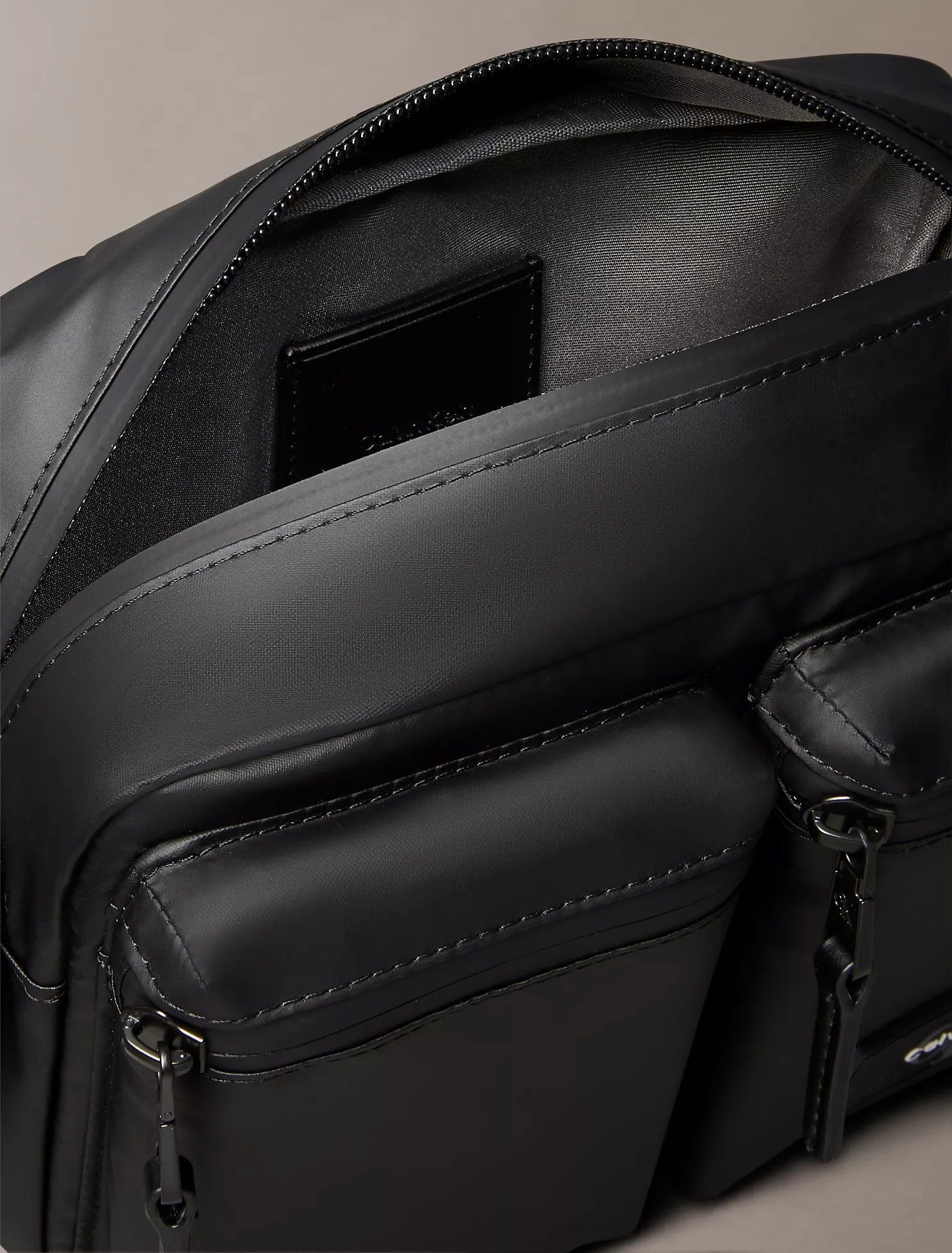 Прорезиненный логотип бренда на одном из внешних карманов.