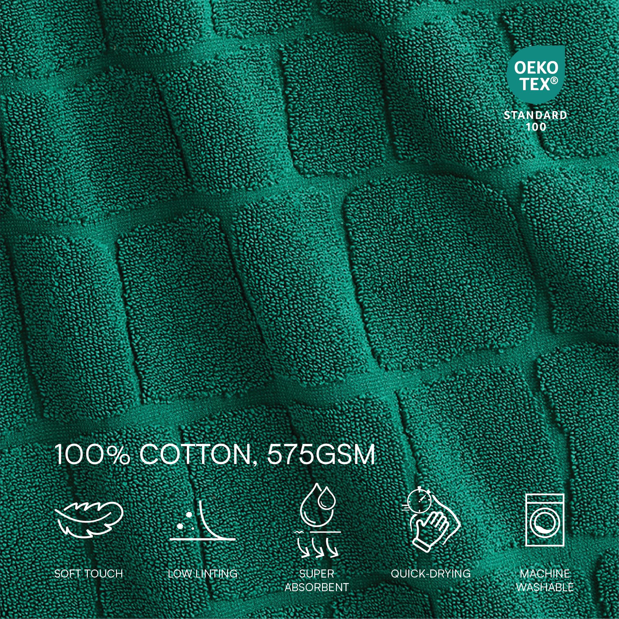Полотенце изготовлено из 100% высококачественного хлопка премиум-класса. Махровая ткань отличается мягкостью, высокой впитываемостью и практически не оставляет ворса, обеспечивая комфорт после каждого использования.