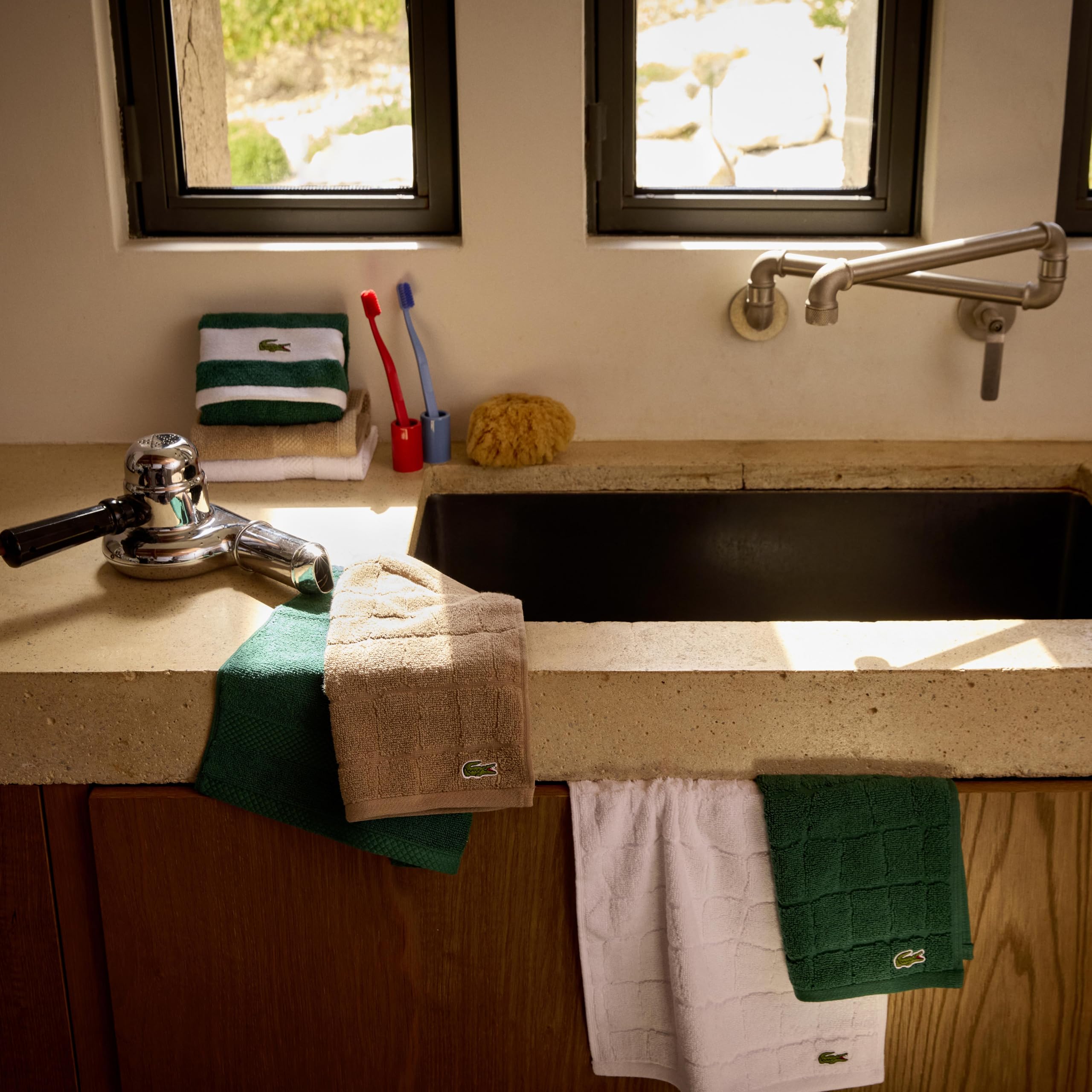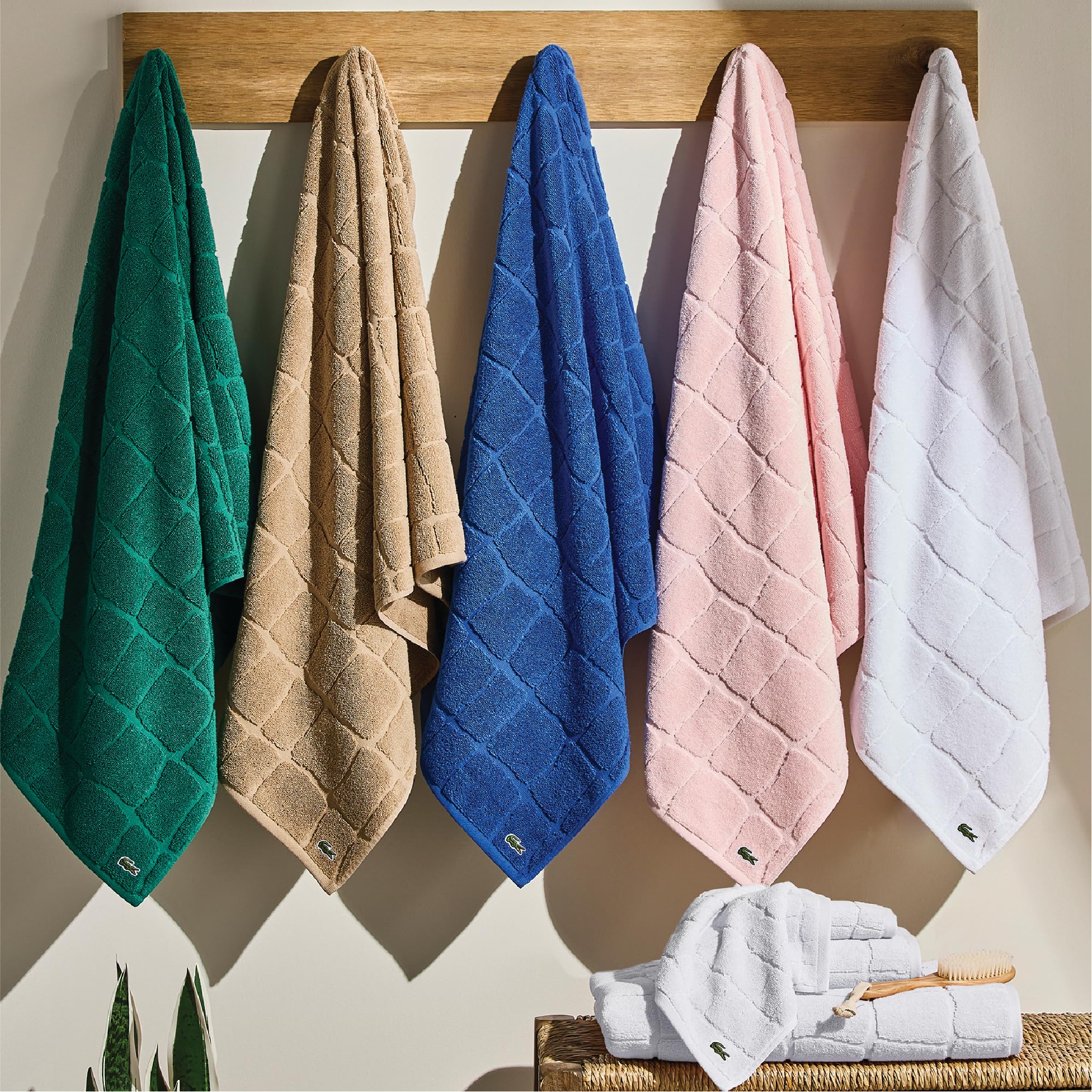 Банное полотенце Lacoste Heritage — стильное и роскошное дополнение к вашему дому, вдохновленное легендарным символом бренда. Дизайн выполнен в оригинальной чешуйчатой текстуре, напоминающем крокодиловую кожу, и дополнен культовым логотипом Lacoste Croc.