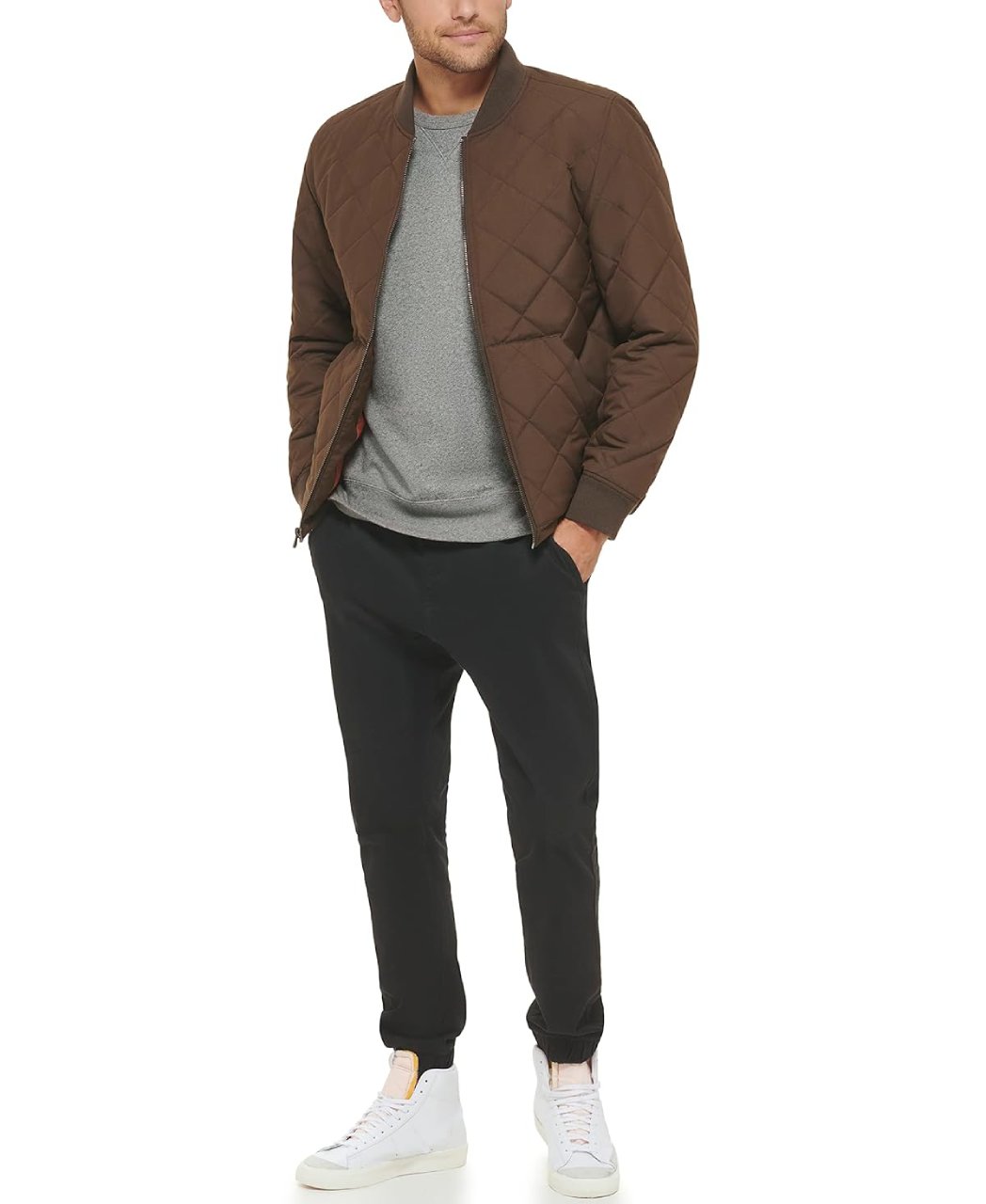 Ромбоподібна стьобана зовнішня сторона, манжети та комір з м'якої еластичної тканини в рубчик.