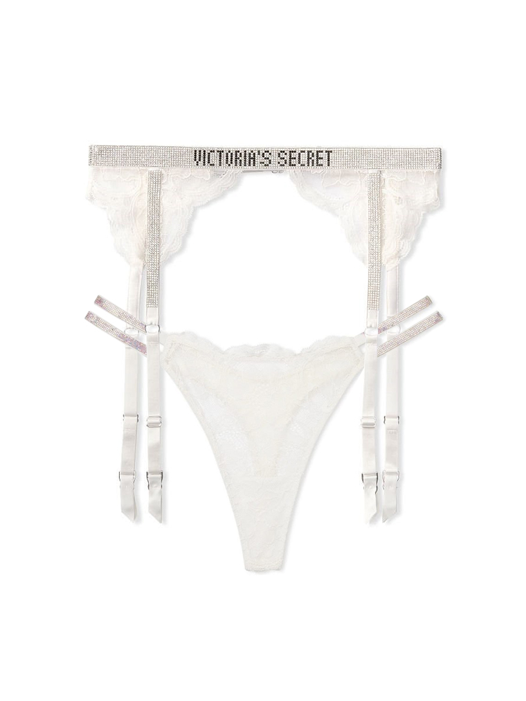 Пояс зі стразами з логотипом, боки прикрашені мереживом.