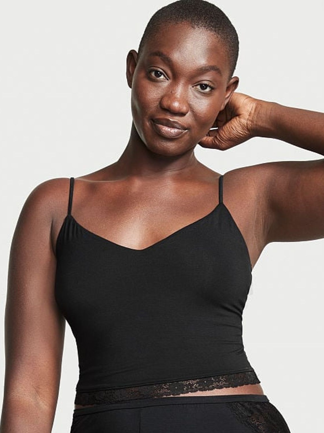 Майка с V-образным вырезом, тонкие регулируемые бретели.