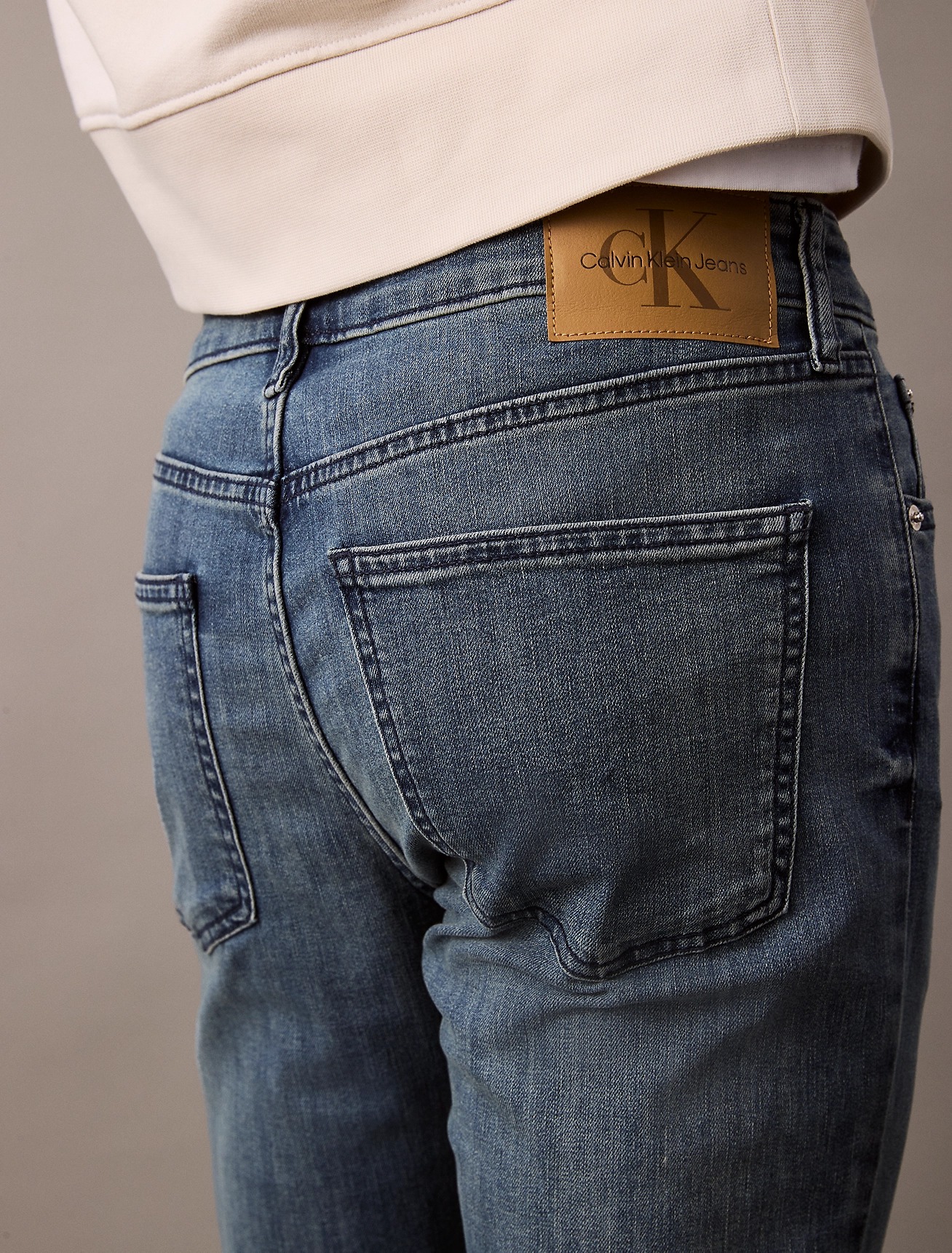 Прикрашені фірмовою фурнітурою Calvin Klein та легендарною нашивкою з логотипом ззаду на поясі.