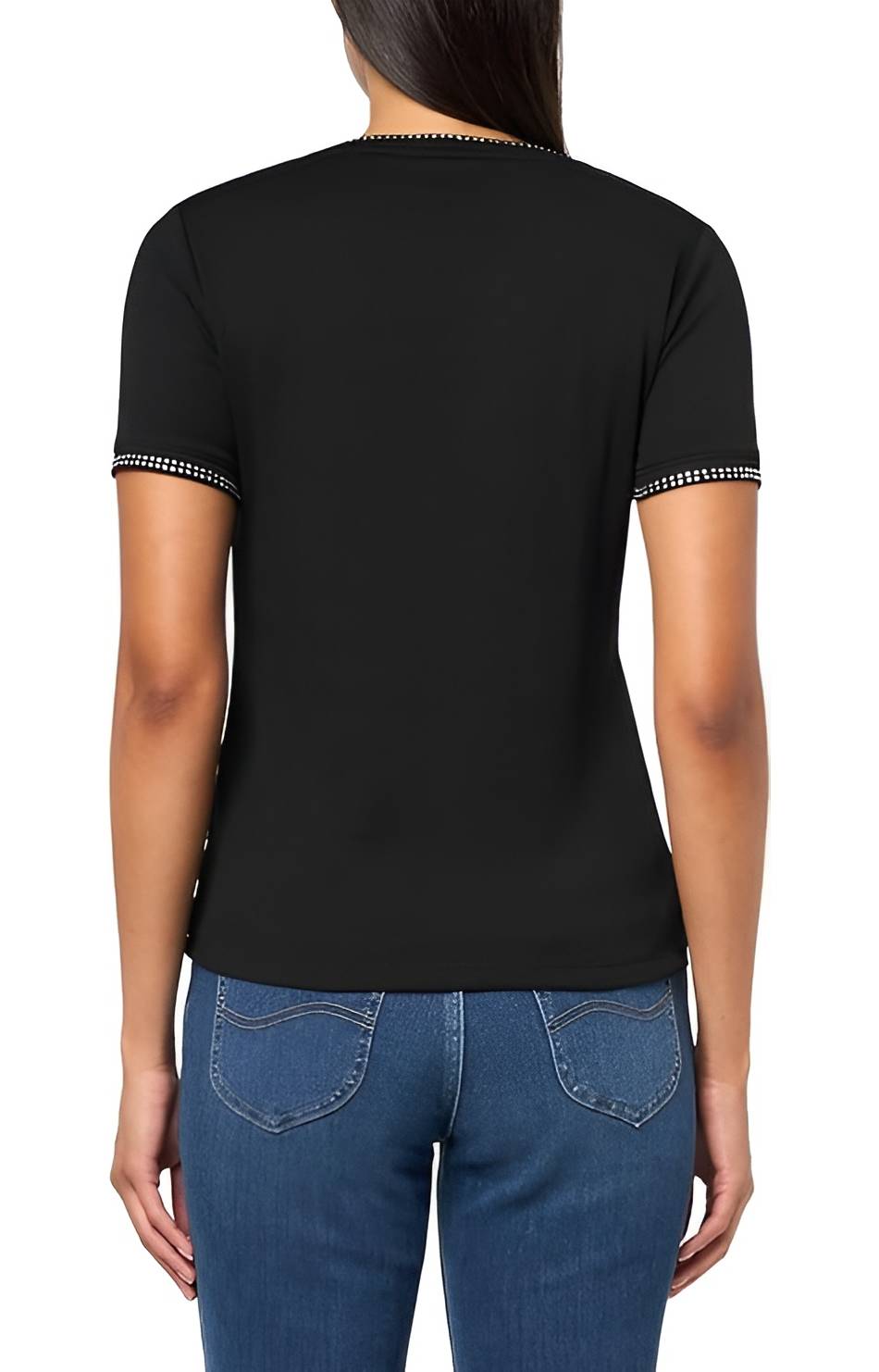 Краї рукавів та горловина прикрашені стразами.