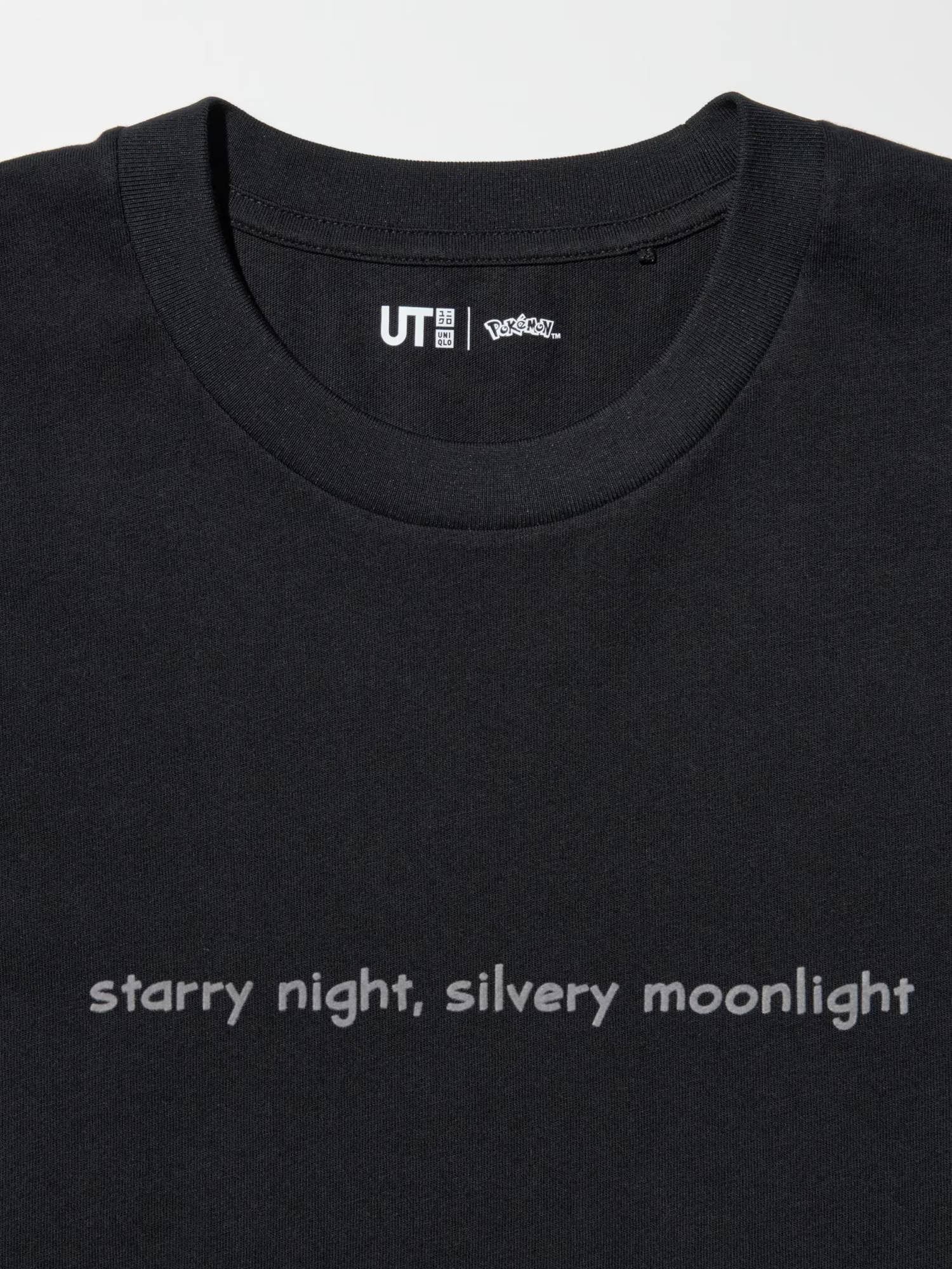 Попереду футболка прикрашена опуклим м'яким написом "starry night, silvery moonlight".