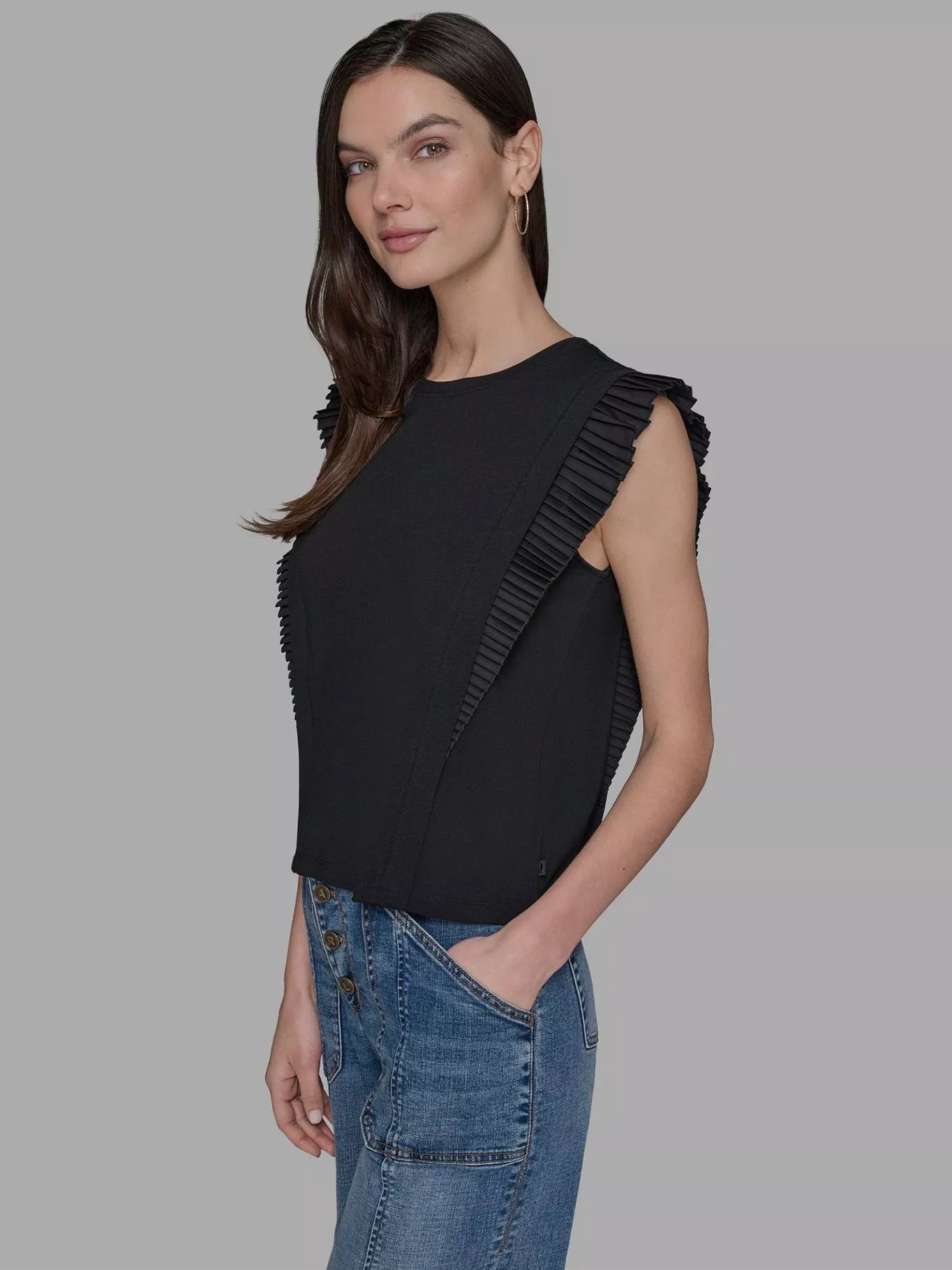 Футболка з оригінальними рукавами-крильцями в складку, які надають чарівного вигляду.