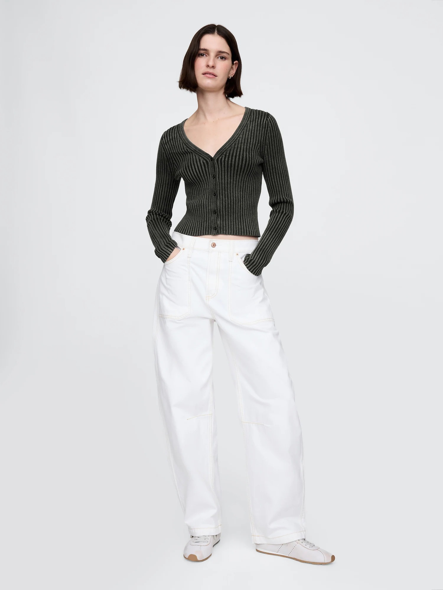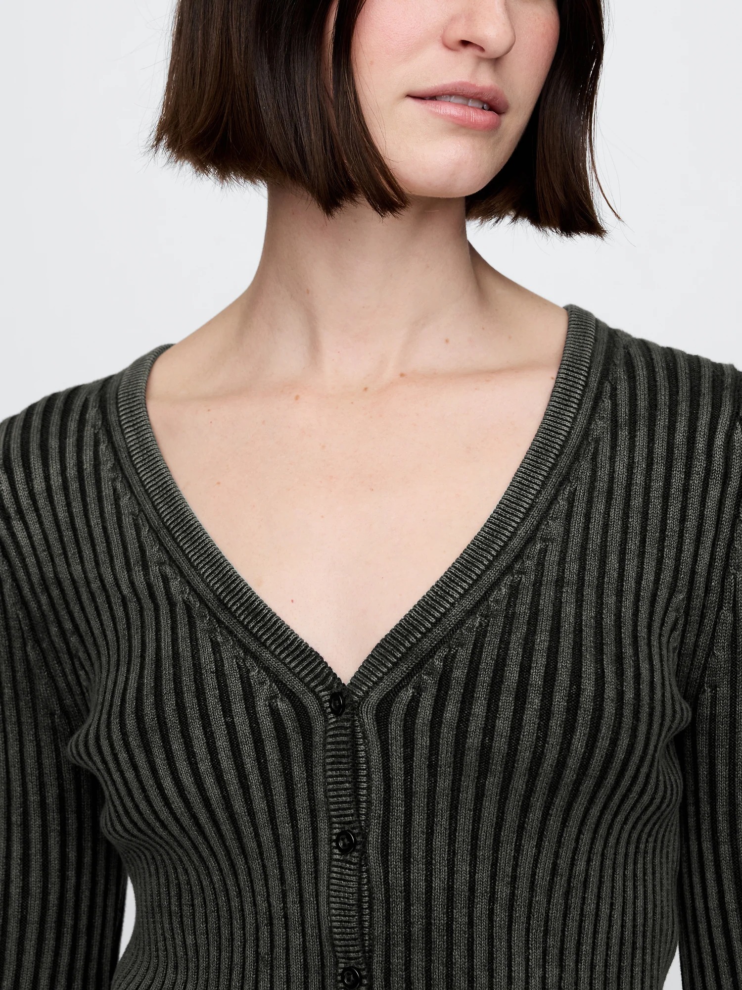 Цей універсальний кардиган можна носити як топ із застебнутими гудзиками або розстібнути як зовнішній шар.