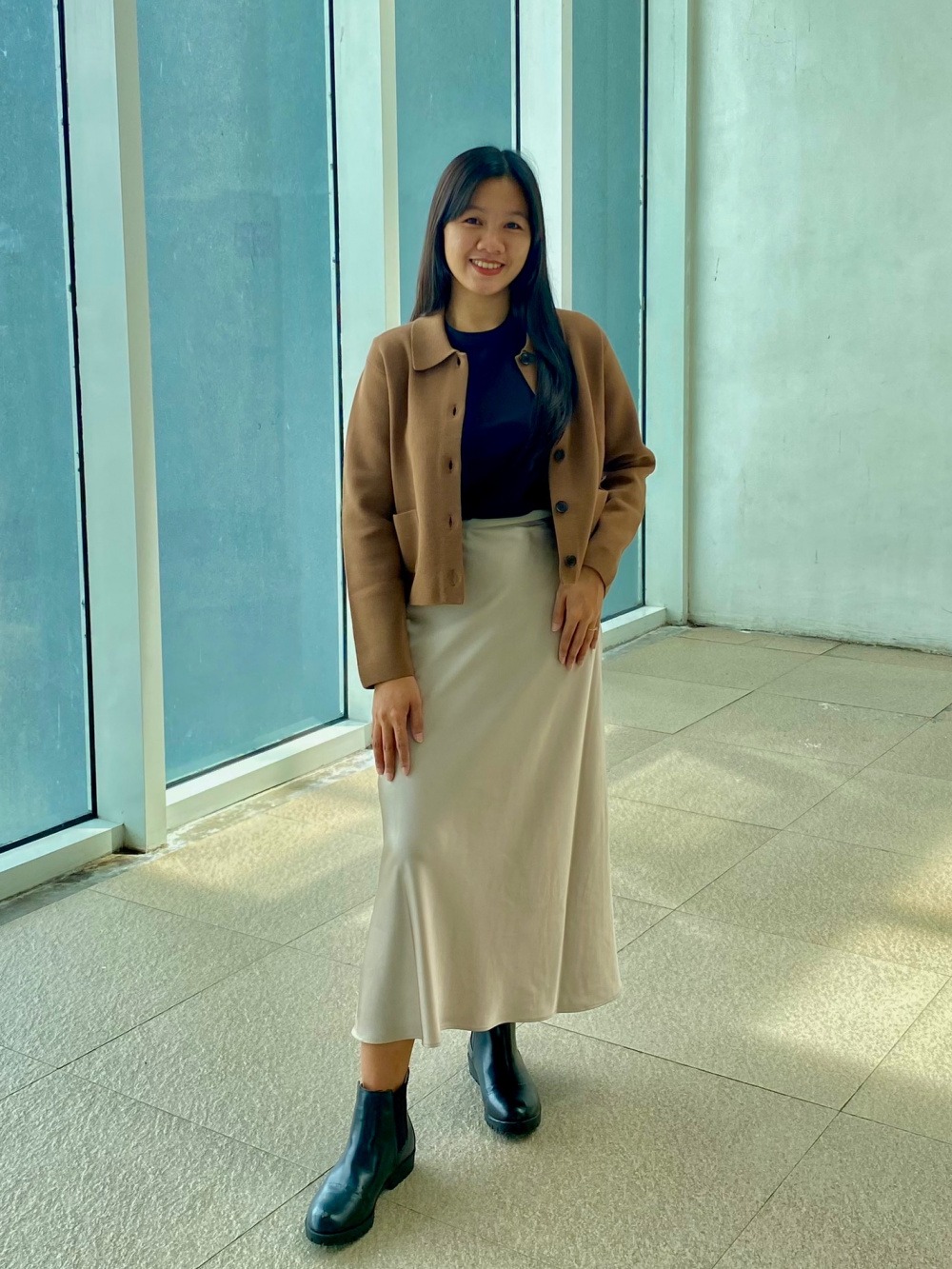 Кардиган із щільної тканини, що олігає фігуру.