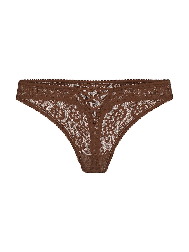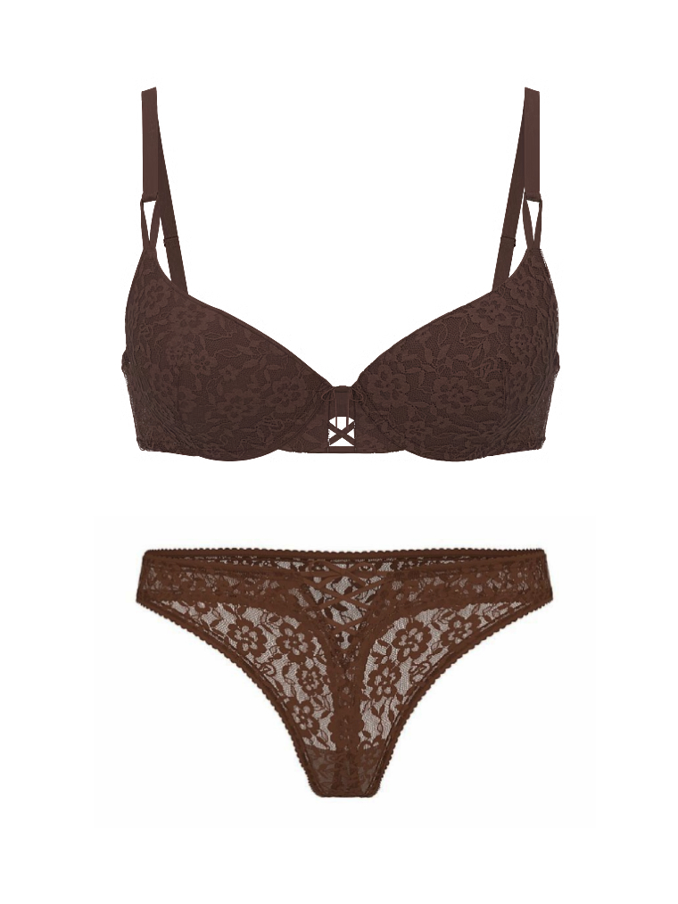 Мереживний комплект, що складається з бюстгальтера та трусиків тонг.