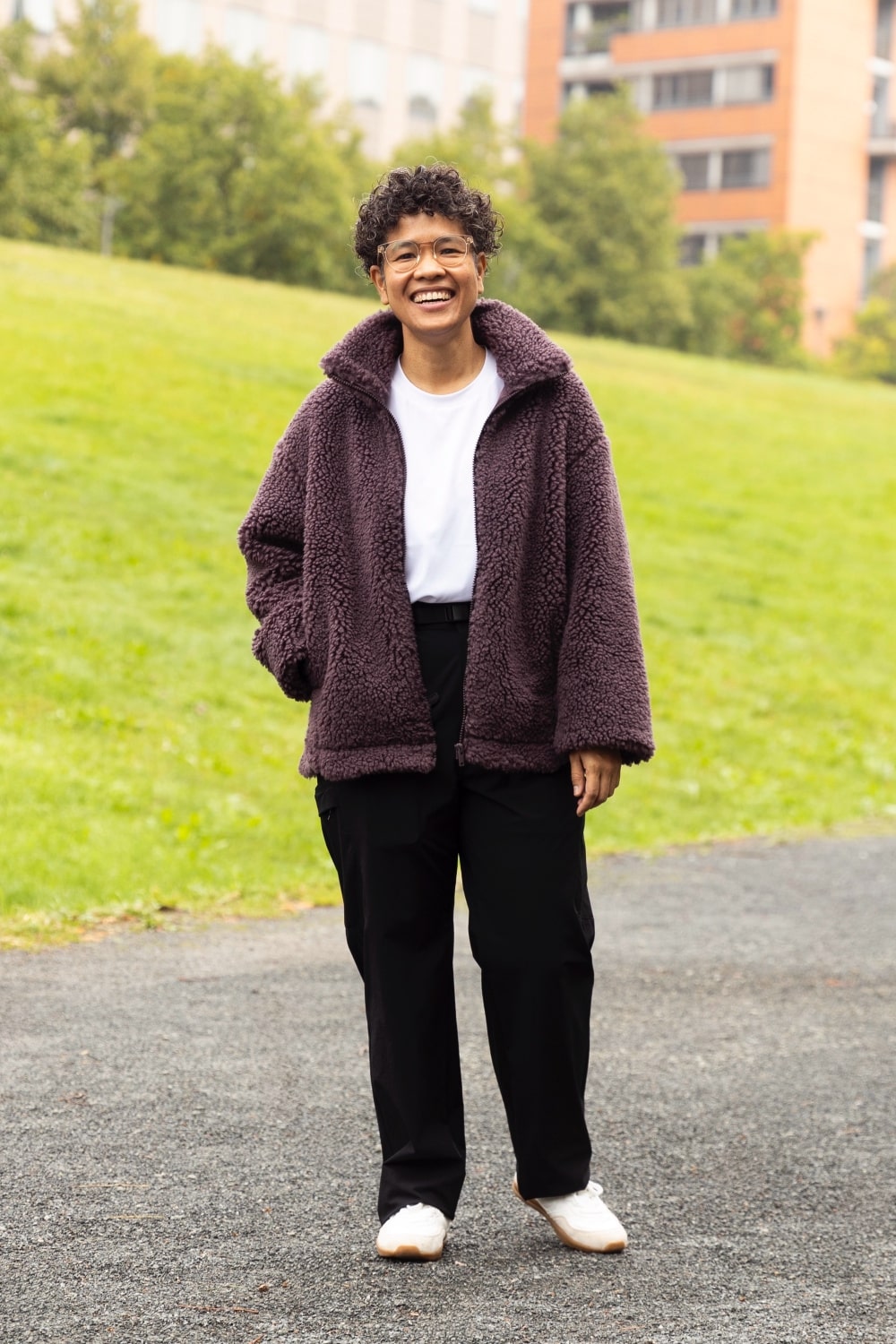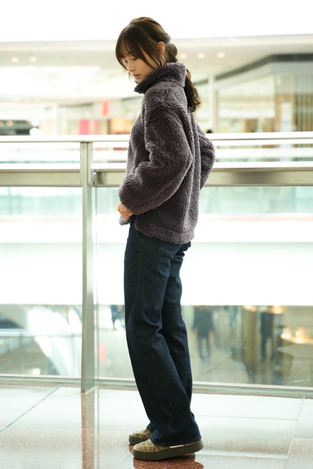 Куртка на молнии из искусственного меха от UNIQLO.