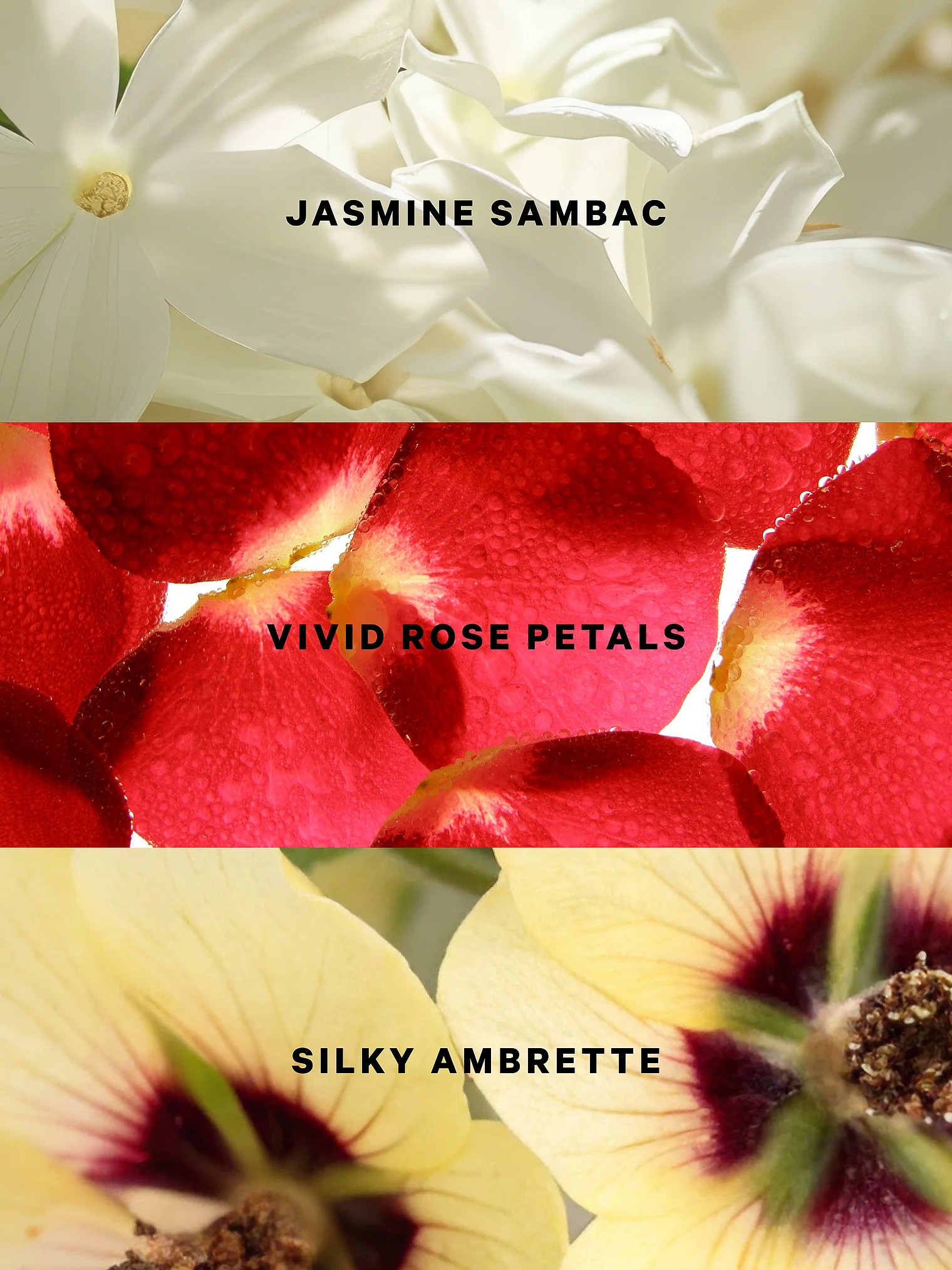 Пелюстки троянд, жасмин самбак, шовковиста амбретта |