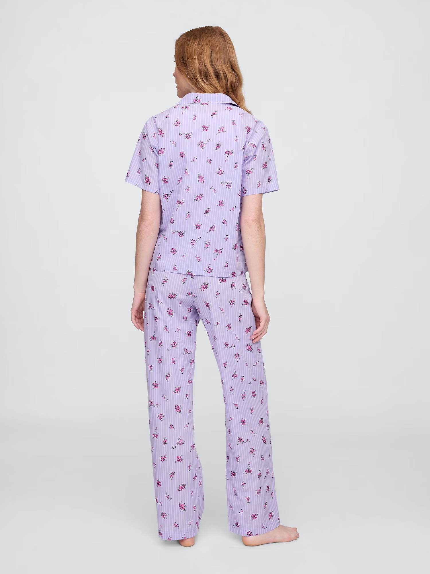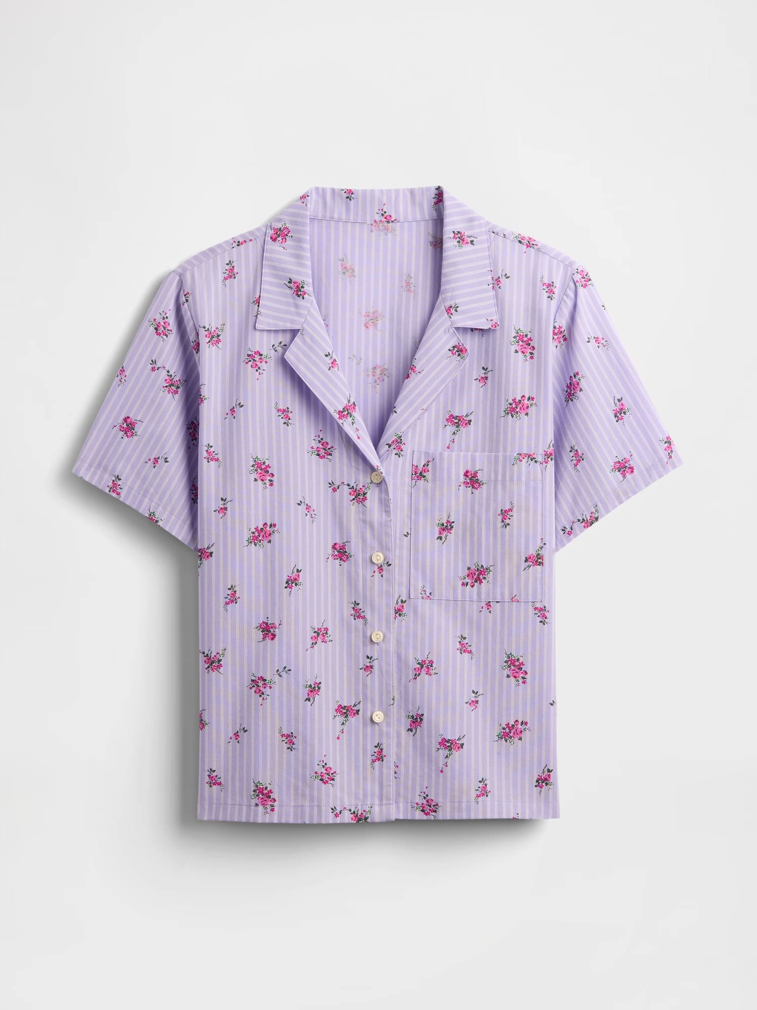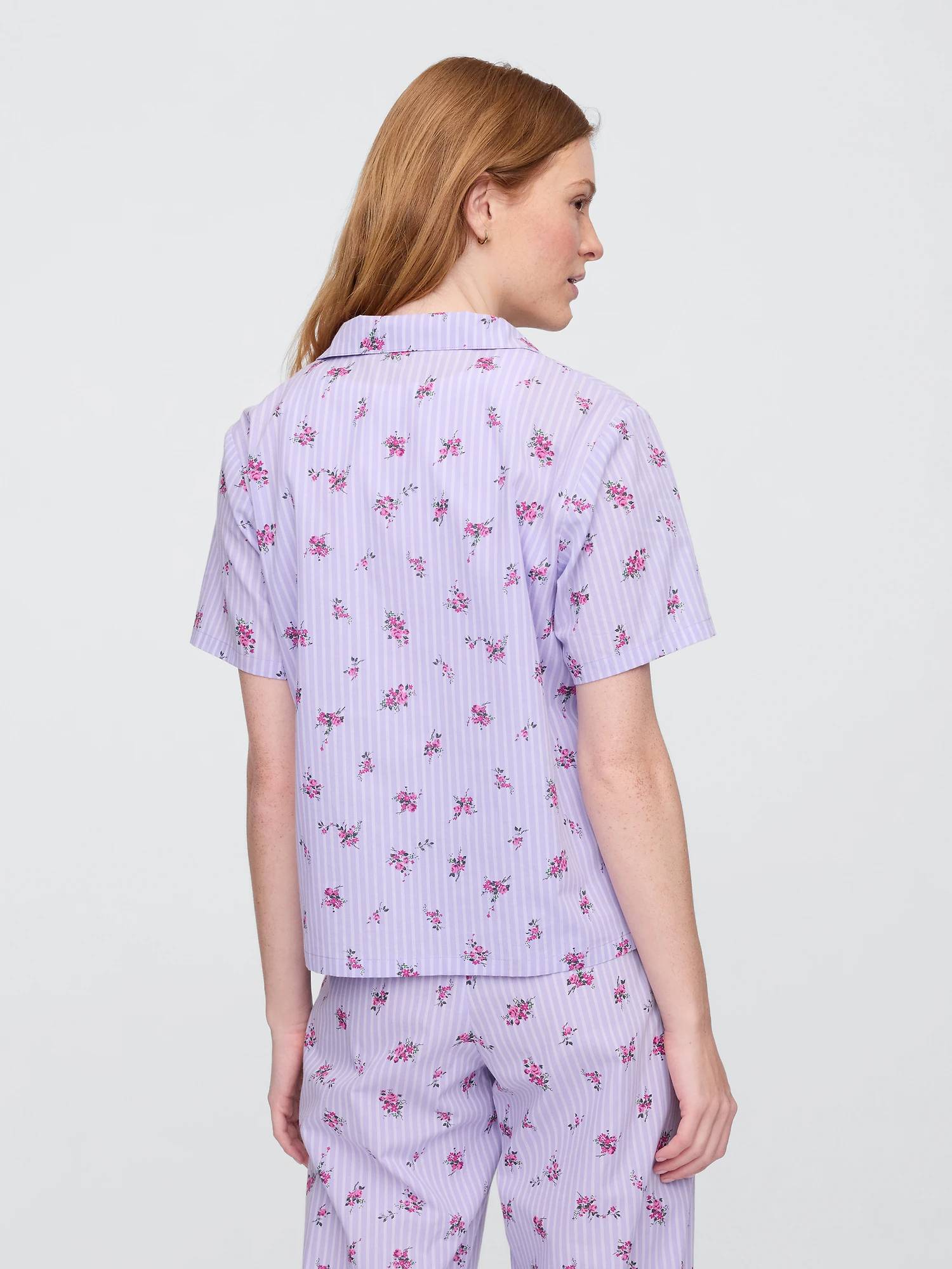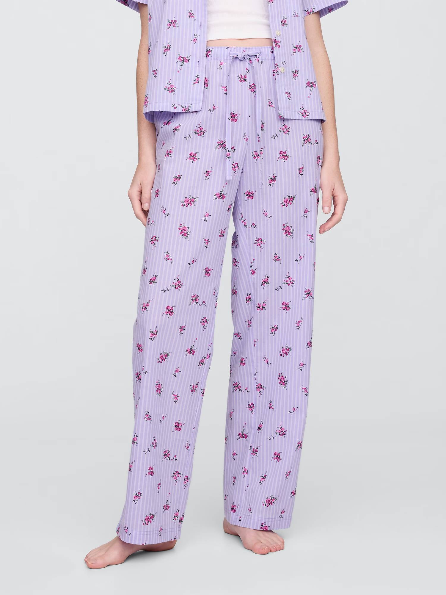 Піжама з легкої натуральної тканини з принтом у смужку та квітковим принтом.