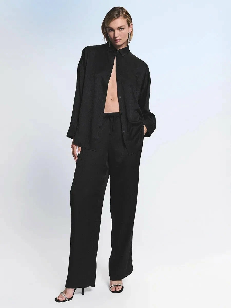 Прямі штани з еластичним поясом та регульованою зав'язкою.