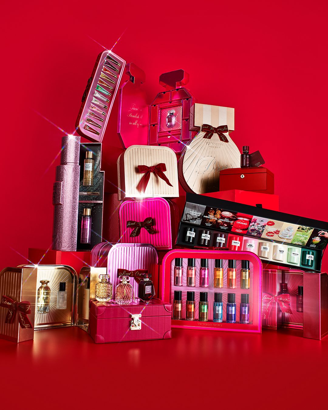 У набір входять: Velvet Petals, Strawberries & Champagne, Pure Seduction, Mango Temptation, Amber Romance, Coconut Passion, Bare Vanilla, Vanilla Lace, Pear Glacé, Aqua Kiss, Midnight Bloom, Love Spell.