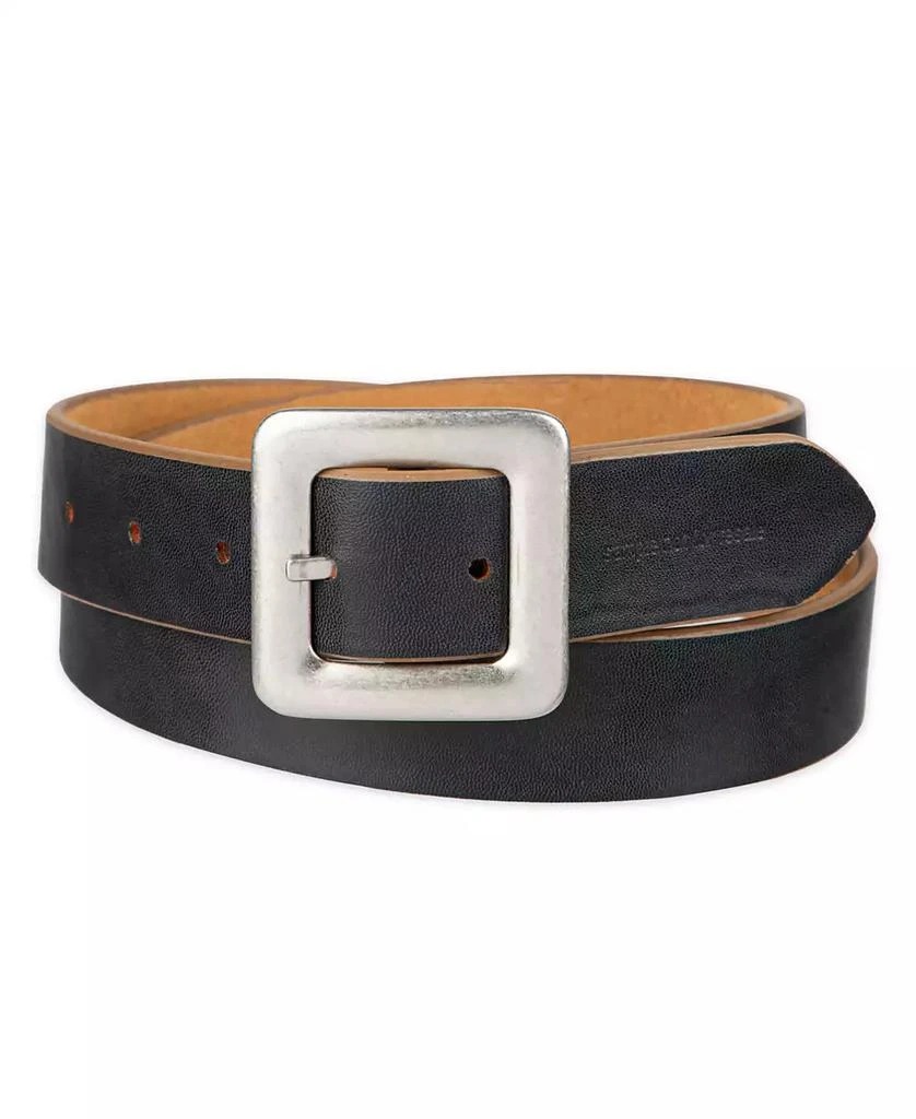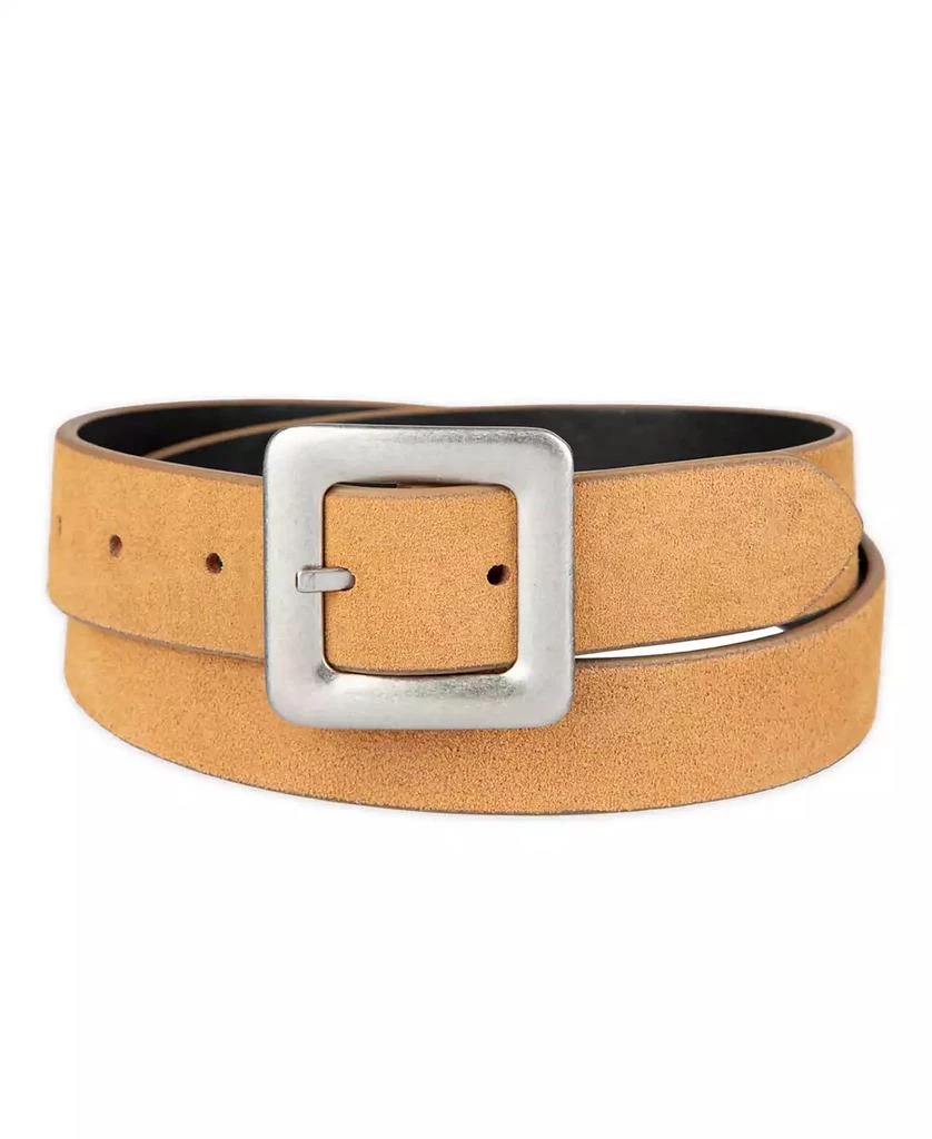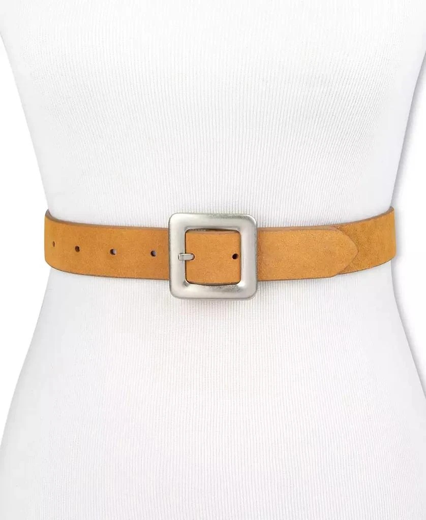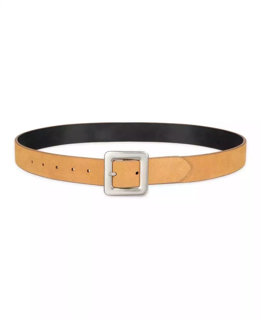 Квадратная пряжка по центру перекидывается с одной стороны ремня на другую, позволяя легко менять образ.
