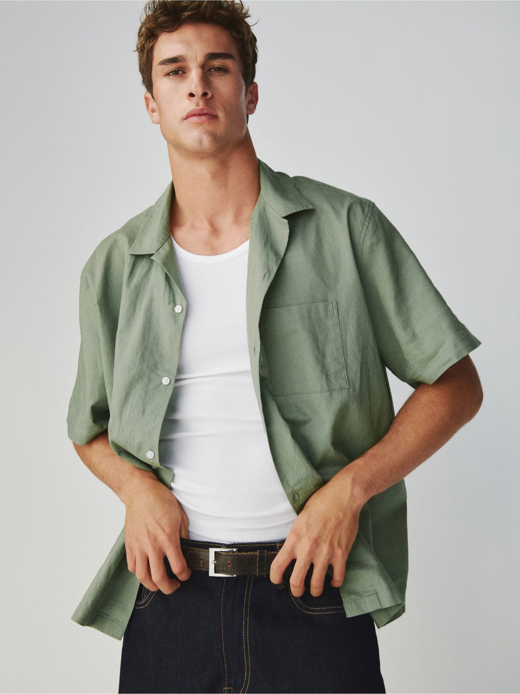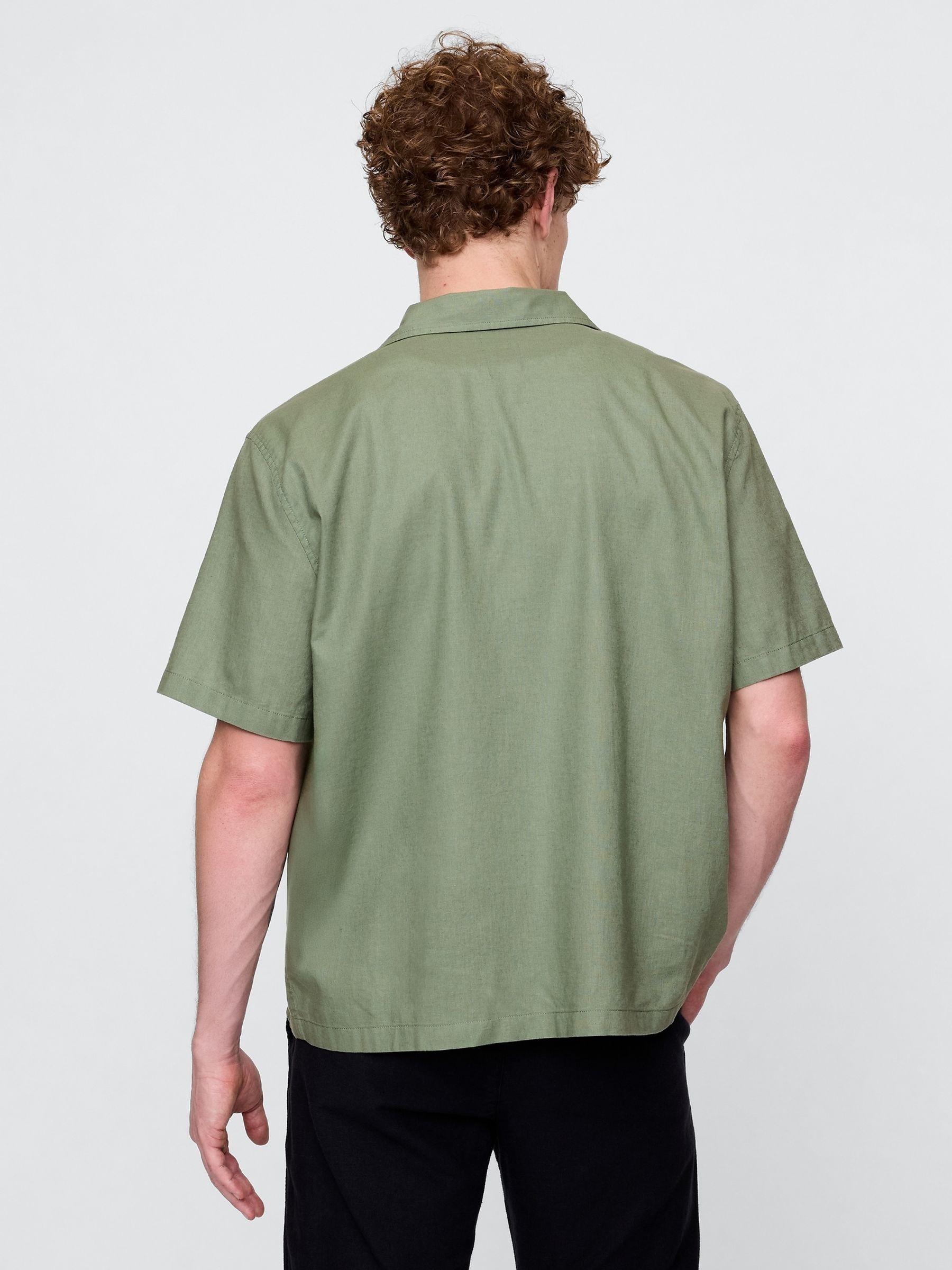 Мужская рубашка с короткими рукавами GAP из смеси льна и хлопка 1159855612 (Зеленый M)