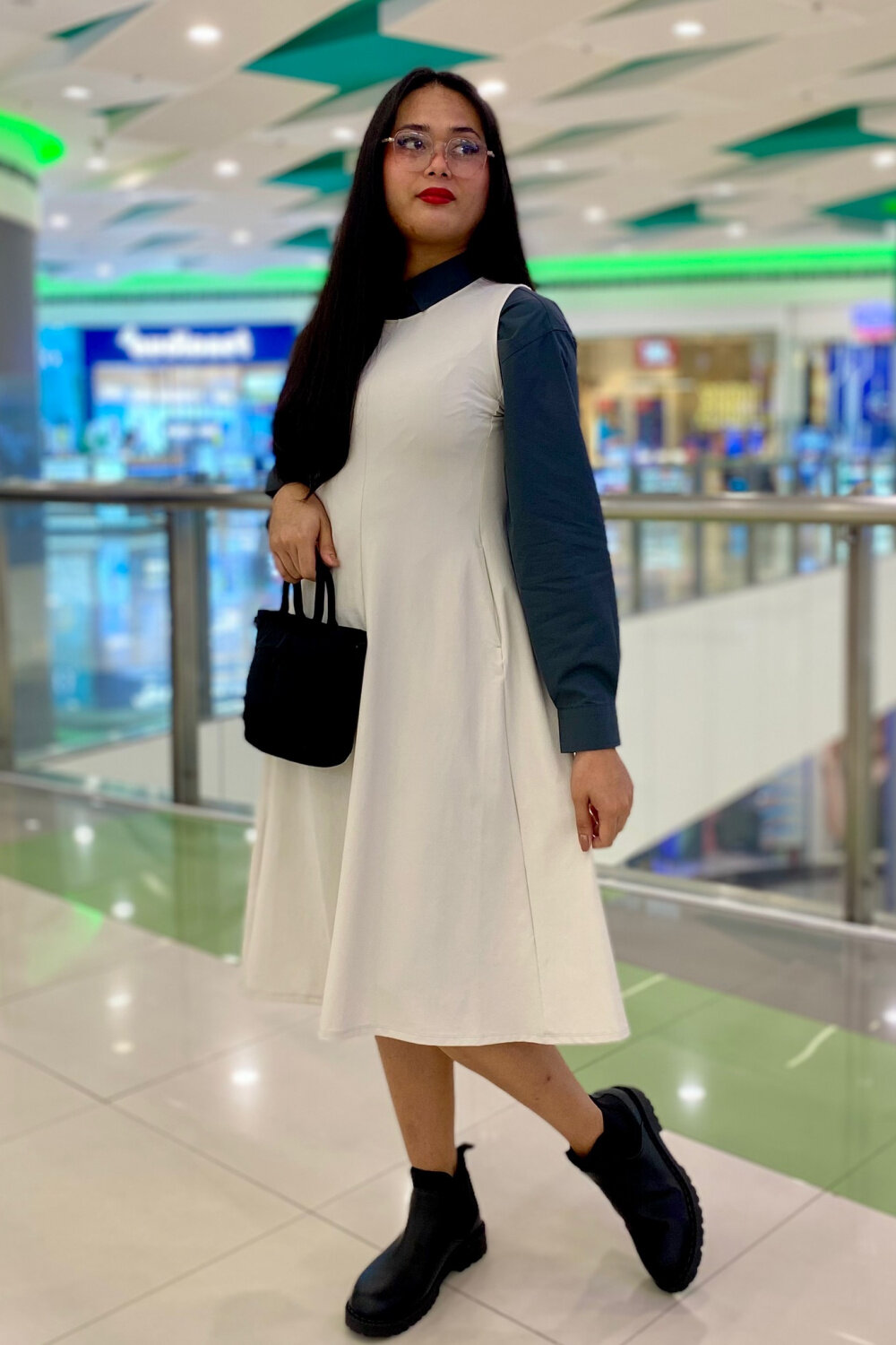 Квадратный низ с разрезами для удобства надевания поверх другой одежды.