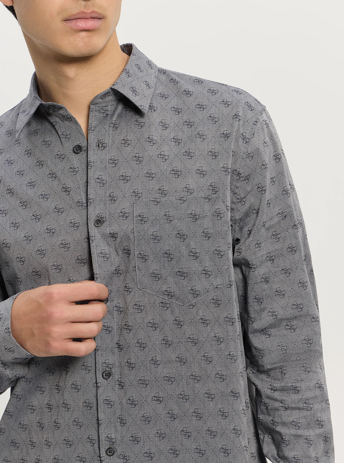 Стильна сорочка з оригінальним принтом у вигляді монограми бренду на всій поверхні.