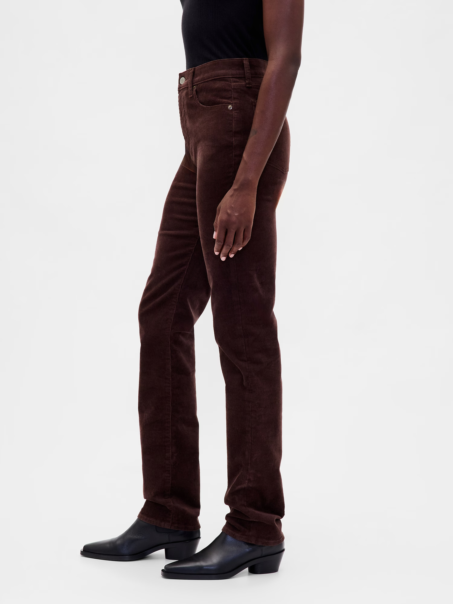 Стильні штани з м'якої вельветової тканини з високою посадкою.
